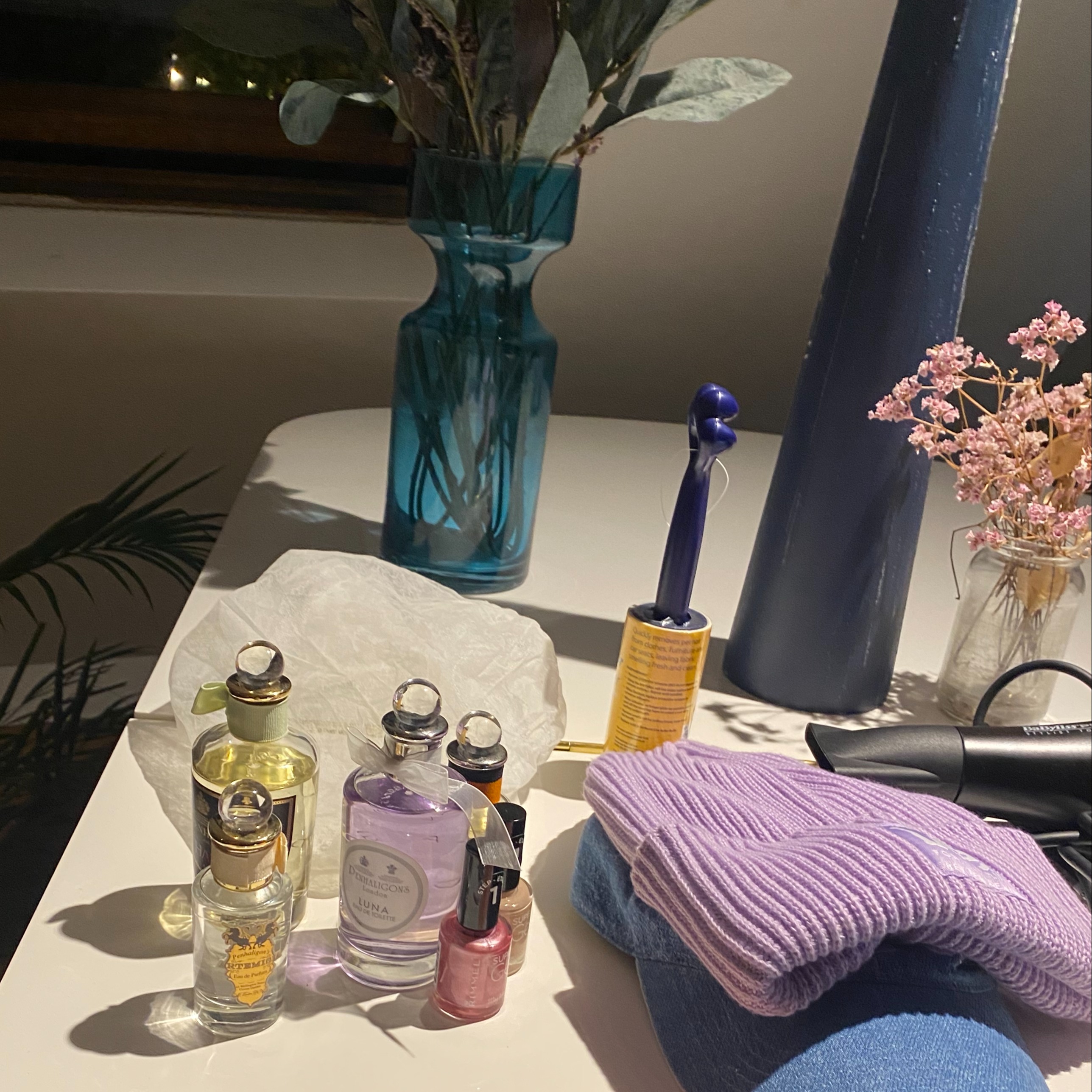 My favorite fragrances are from Penhaligons. I love the rich scent of Halfeti for evenings and special occasions, and the sweet light floral fragrance of Artemisa for daytime—I always get compliments when I wear both of those. And on my nails, I like a nude polish. My favorites are from Essie: Sugar Daddy, Mademoiselle, and for a bit of sparkle, Vanity Fairest. OPI Plumping Top Coat is the best top coat. It gives a gel like finish whilst still being easy to take off.