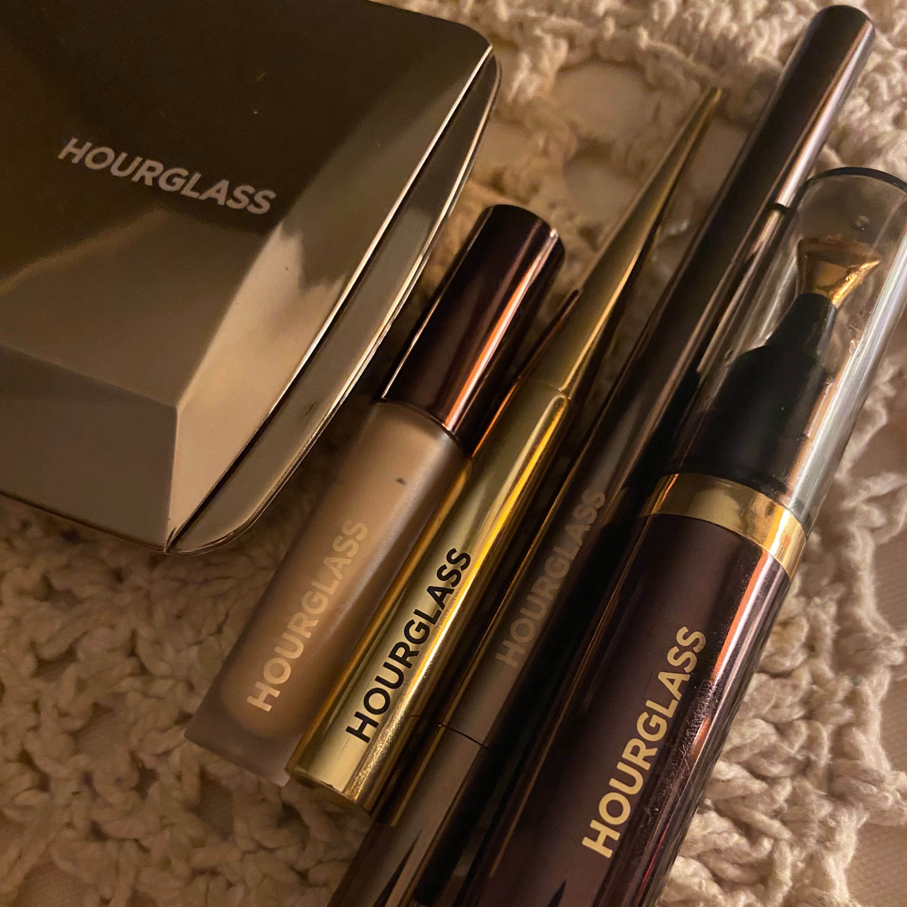 For my face, sometimes I pat on Tata Harper’s Hydrating Floral Essence for hydration, and I’ve also been using Kate Somerville’s Quench Hydrating Face Serum. That’s an old classic that has never broken me out. If I do have a spot, I’ve been using the Clean and Clear Advantage Acne Spot Treatment. It kinda zaps everything. I like the Tata Harper Clarifying Spot Solution too. Recently I started using a little combo of the True Botanicals Pure Radiance Oil with a little tiny bit of their Vitamin C Booster, which adds a little glow that I like. I’ve been using Natura Bissé’s The Cure Cream for over a decade. I’ve tried so many different things but I always go back to it, I don’t know why. I just love it. And finally, I use the Hourglass Cosmetics Equilibrium Intensive Eye Balm. Everything Hourglass makes is vegan, and beautiful. I’ve been obsessed with their makeup— their lip colors are amazing—so I started incorporating the eye cream. I feel like it properly penetrates my skin overnight.