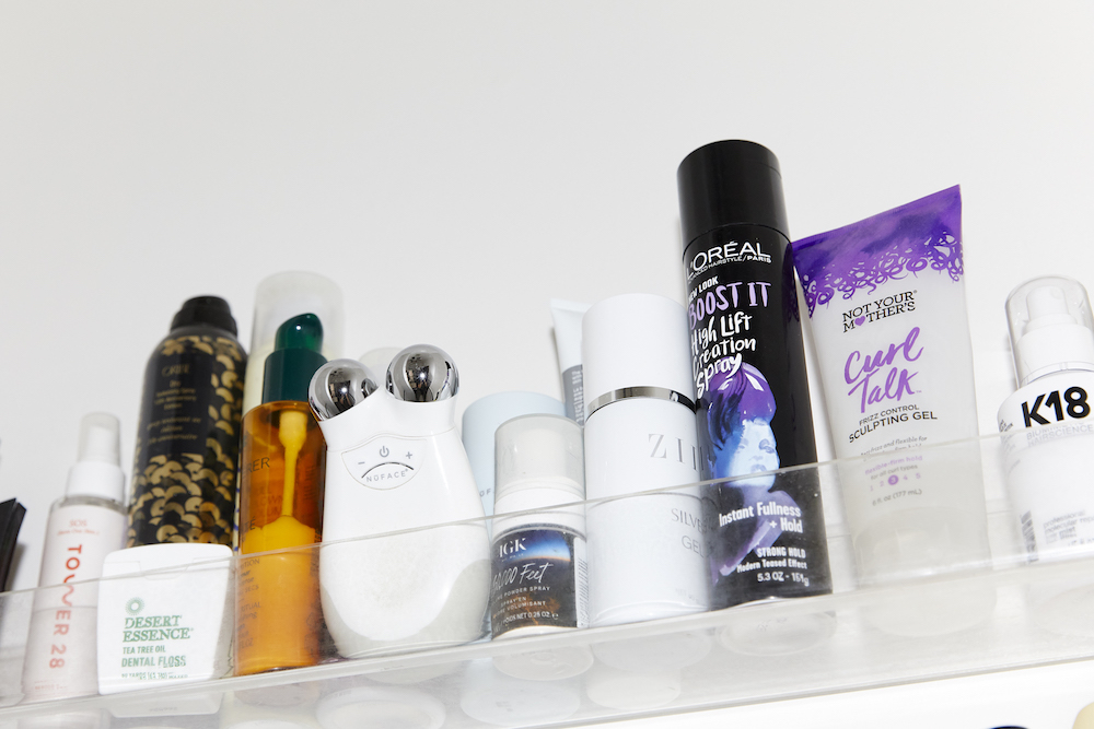Katie Jane Hughes collaborated on a brush kit with Spectrum Collection, and I got the whole thing. Sometimes, when I put on cream products, they start to bunch up and get patchy, but these brushes prevent that. When I use Lip Bar’s Skin Glow highlighting serum as a primer everyone always asks me what I put on my skin. It’s just Skin Glow with some sunscreen over it! If I want something with more coverage, I like the It Cosmetics CC cream. But when people say their SPF is in their foundation, I’m like, 'So you’re not using SPF.' There’s no way you’re going to get enough coverage unless you wear foundation like caked mud. It Cosmetics also has a dupe for YSL’s Touche Éclat, the Perfect Lighting Highlighting Concealer. It’s the same exact tube, and it gives a very even finish. For blush, I really like the Tower 28 and Kosas cream ones. If you have dry skin and want it to look dewy, cream products are great. And when I wear the About Face Light Lock liquid highlighter, people stop me on the street. It makes me look like a glazed donut.