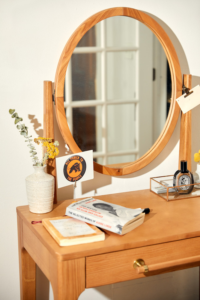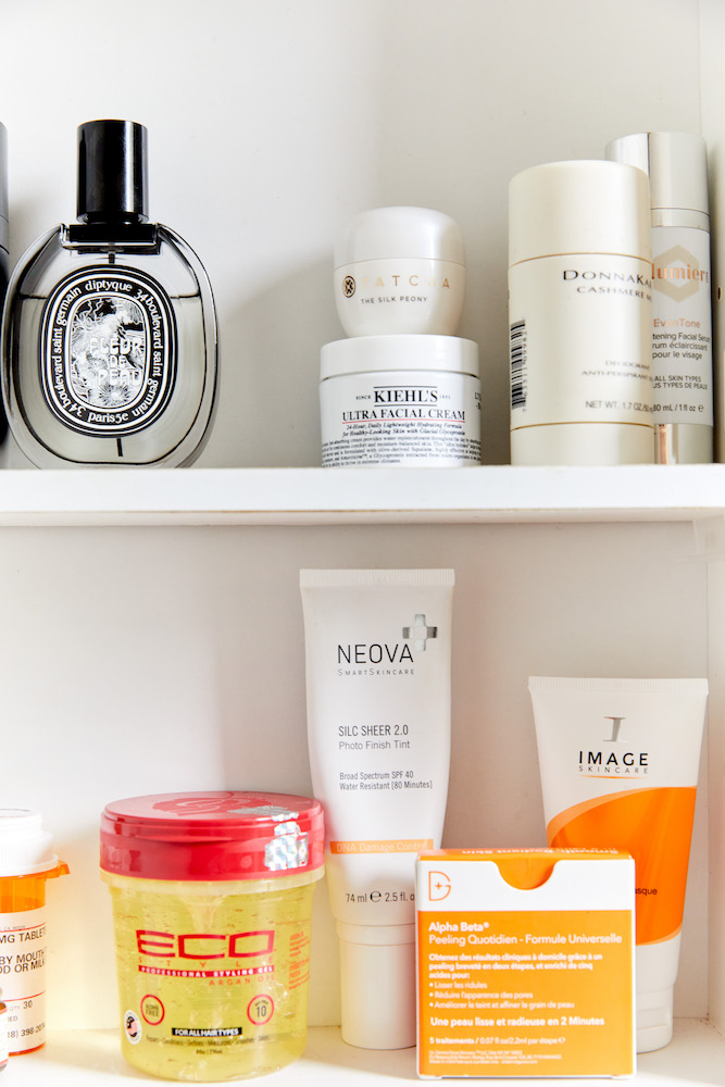 I want to be the Rihanna of my own life, and I like finding scents that mix really well together, on all of your body. So that’s The Ouai Leave In Conditioner, Donna Karan Cashmere Mist Deodorant, and the Aveeno chamomile and lavender lotion, which isn’t super scented, but feels really good. For perfume, I use Diptyque’s Doson, which is perfectly musky. I just bought another Diptyque scent, Fleur de Peau. It’s a more feminine scent that I like to use as well. I swear by smelling good. It gives me anxiety to feel like I might not, and that’s for me to unpack at another time with a therapist, maybe.”