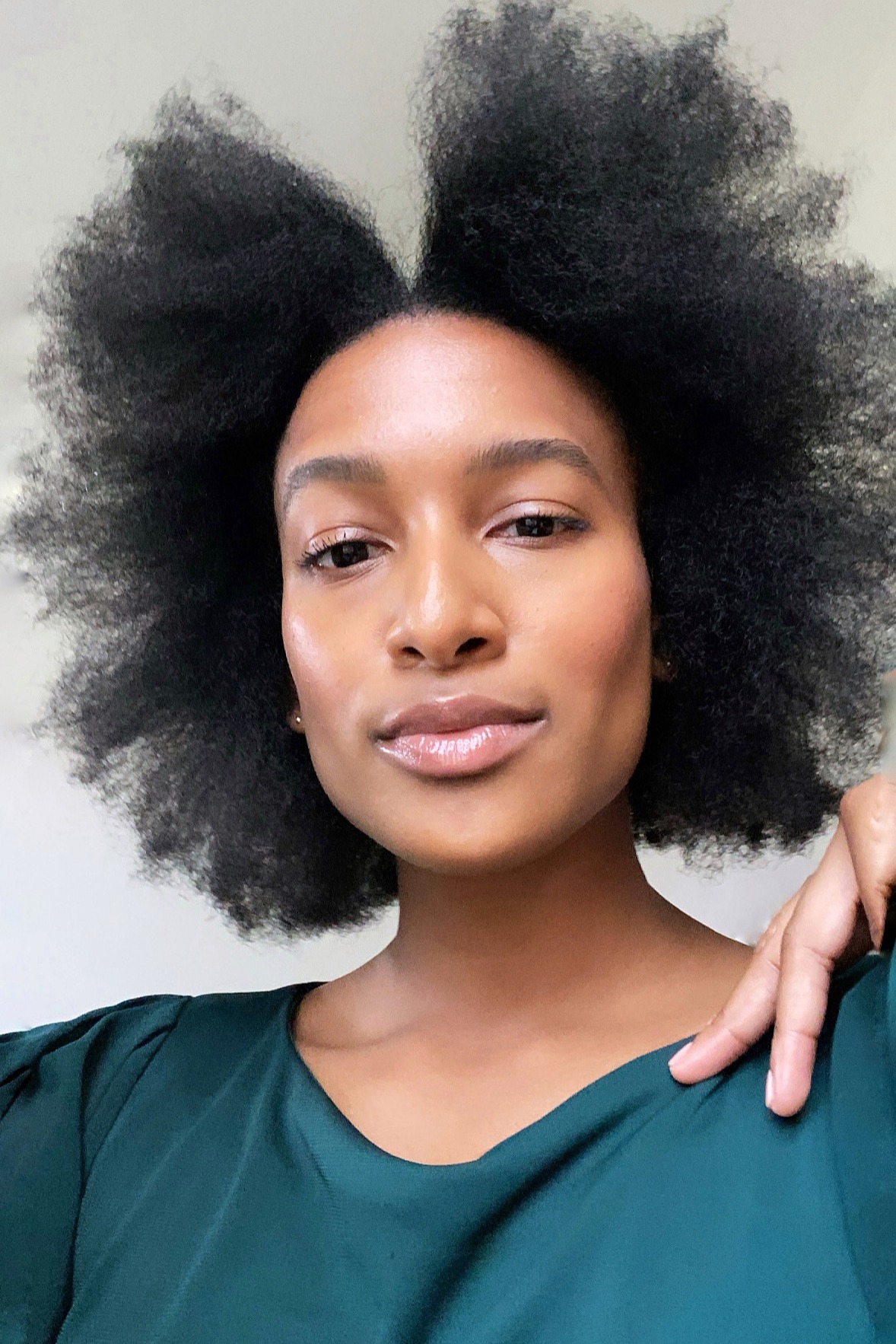 During the week, I keep my face video-ready: a groomed brow, a cream blush, and lip oil does the trick. Eyebrows are the most important thing to frame my face, so I start there with makeup. I use Merit’s Brow 1980 in Brown to keep my eyebrows in place and add a bit of volume—I honestly stan that entire line. I then pencil my brows in with my favorite drugstore product, Maybelline’s Brow Ultra Slim Defining Eyebrow Pencil in Deep Brown. I’ve been using this pencil for years. I love it because it has a spoolie at the end, and because it’s so small and adorable (!!). After eyebrows, I grab Merit’s Perfecting Complexion Stick in Amber and use it as a concealer to even out my skin. I apply a little bit under my eyes, around my mouth and on my cheeks. I then finish with Ami Colé’s Skin-Enhancing Tint in Deep 2. This is by far one of the most beautiful brands for Black skin I’ve ever used. It’s hydrating, my skin can breathe, and after application, my skin is the main character of my everyday look. Once that’s set, I apply Merit’s Flush Balm in Deep Berry to my cheeks. I recently started wearing mascara again, and my go-to is Ami Colé’s Lash-Amplifying formula. It’s a deep, inky black that adds length without flaking and looks freshly applied (with no weird cast or dryness) all day. To finish, I grab Merit’s Shade Slick lip oil in Taupe. It’s shiny without being sticky and the exact color of my natural lips, another favorite feature of mine.