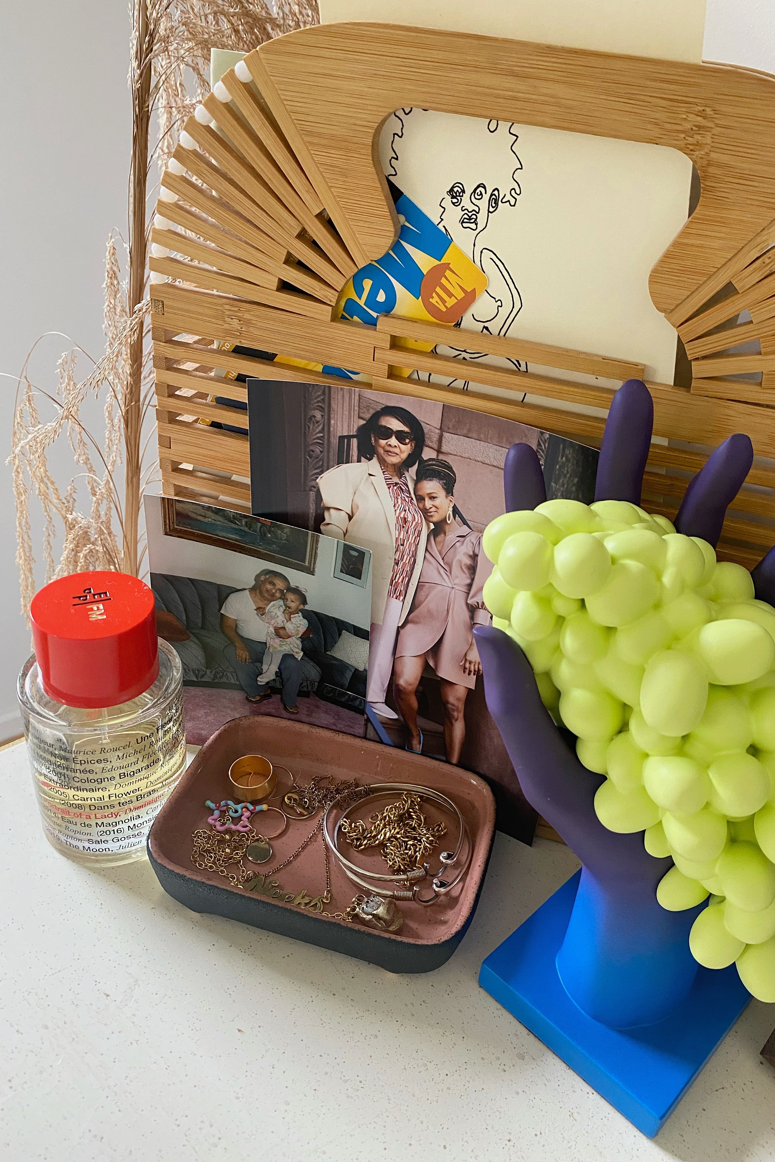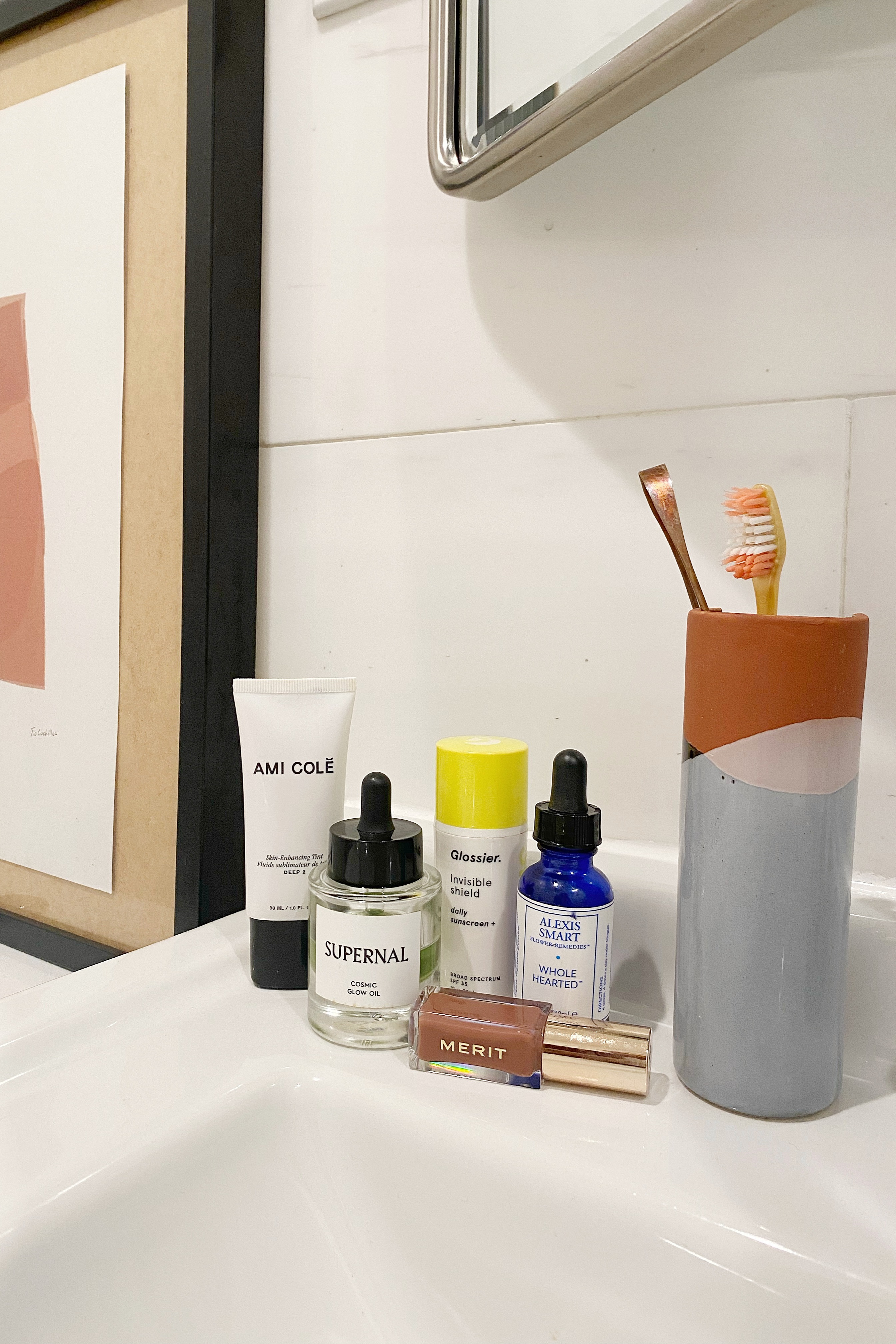 I was raised by my grandparents, and am constantly inspired by the power of intergenerational relationships and the wisdom from our elders. My grandma is 81 years old and has the most amazing skin. Her routine is simple and consistent: Noxzema, Pond’s Cold Cream, Vaseline. Even though she was proof that less is more, I used to feel so overwhelmed by the amount of skincare products on the market and tested new things constantly. I thought that brands marketed as natural were best because that’s what aligned with my lifestyle—not necessarily the case! Last year in quarantine, I became committed to enlisting a Black dermatologist to help me with my routine. And now, Dr. Rose Ingleton is the secret weapon in my beauty arsenal. I’m so grateful for her, and I follow her recommendations to a T. She helped me pare down my products and integrated prescriptions gentle enough for my sensitive skin. I also see her every six weeks or so for a gentle chemical peel to fade my hyperpigmentation. I’m in and out in 15 minutes, and can go right back to the office afterwards.