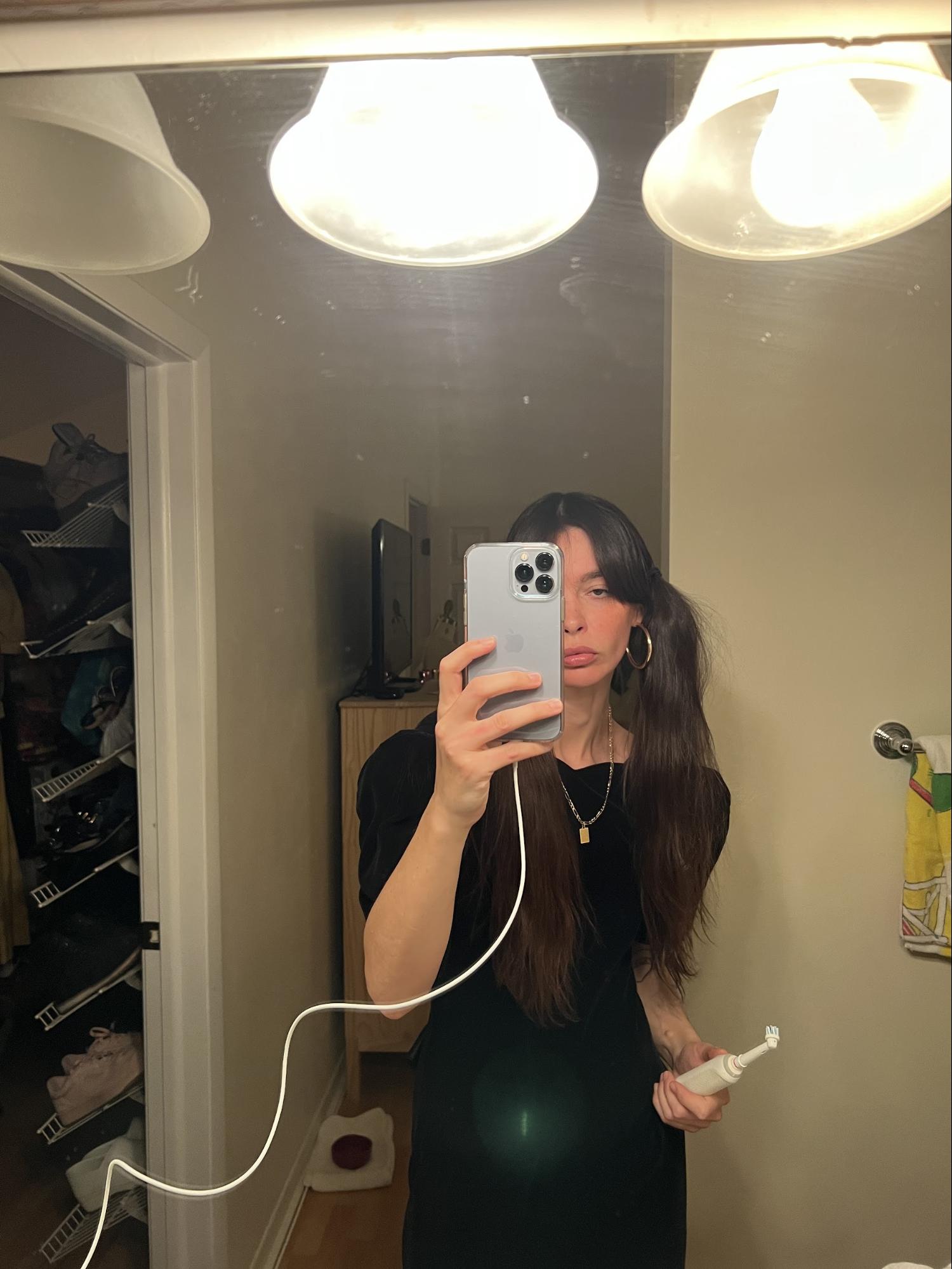 For my hair, I practically do nothing. I don’t do any styling and you can usually catch me cutting my own bangs but I do love skincare. In the morning, I wash with Dermalogica Daily Glycolic Cleanser followed by a five minute Nuface treatment, Biolumi-C Serum by Dermologica, Murad Oil-Control Mattifier Moisturizer, andIlia Super Serum Skin Tint SPF 40. Then, I’ll do Glossier Cloud Paint (I mix colors and put it all over, the more blush the better) and Boy Brow. At nighttime, I wash with Glossier Cleanser Concentrate followed by Superberry Hydrate + Glow Dream Mask with Vitamin C by Youth to the People. Occasionally I’ll swap and try a new product but that’s my current regimen. I also love a good face mask. Besides randomly acquired sheet masks I use Kiehl’s Rare Earth Deep Pore Minimizing Cleansing Clay Mask a few times a week.