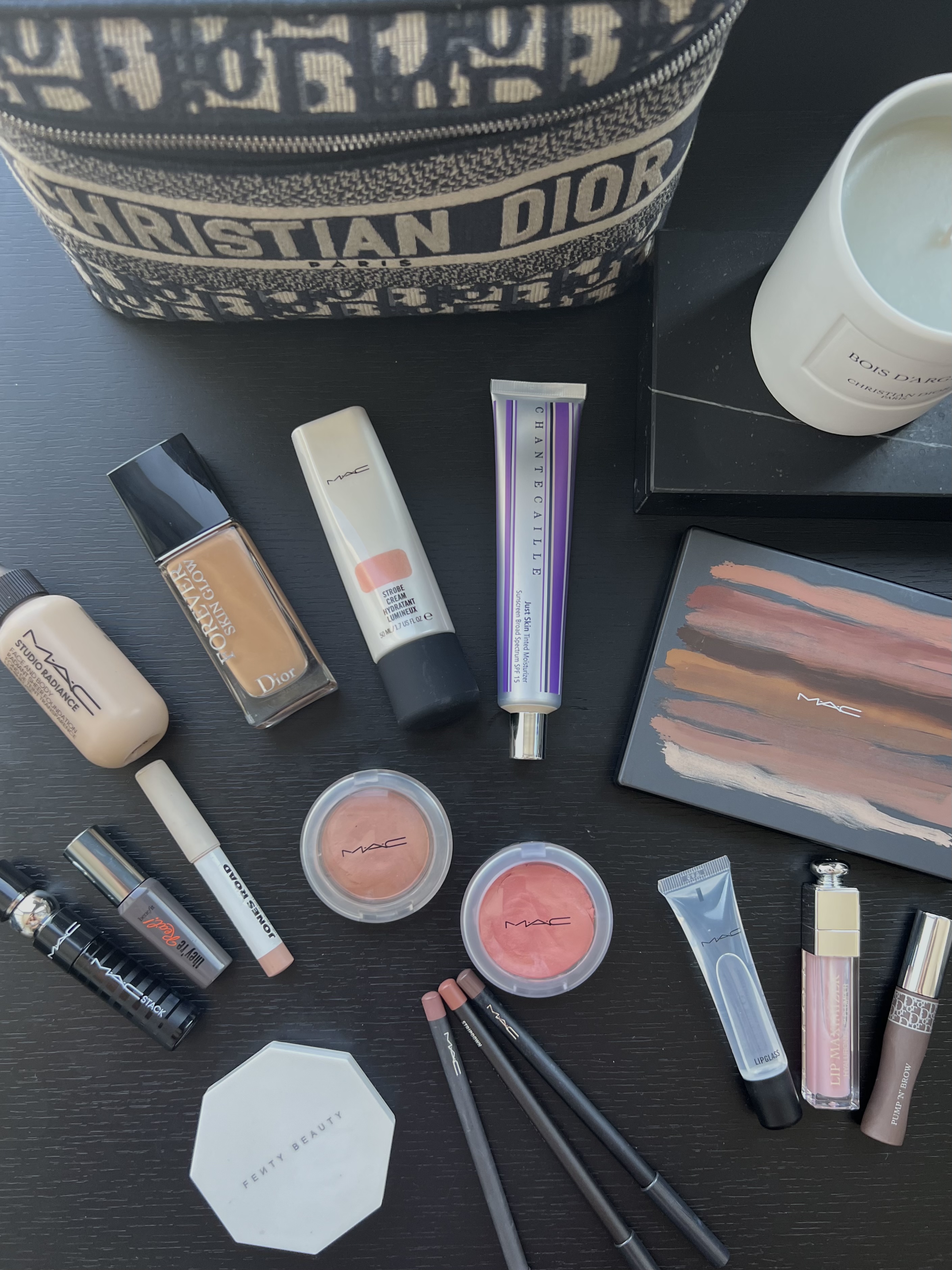 For makeup, I try to keep it as natural and glowy as possible. During my time at MAC, I discovered the Studio Radiance Face and Body Foundation, which has changed my life. Whenever I put it on with the Glow Play Blush in ‘So Natural,’ at least one person tells me I look like I just got home from vacation or that I’m glowing, It’s my new go-to combo topped with a bit of Jones Road ‘The Face Pencil’ for concealing, and Diorshow Pump ‘n’ Brow to tame my curly brows. For the lip, I add some MAC lip liner in a neutral color like Whirl or Oak, topped with a neutral gloss. My lips are naturally super pink, so I try to tone them down a bit with neutral tones. To finish off, I always go in with Benefit They’re Real Mascara, which is one of my favorite makeup products of all time. I have put so many people, including my entire friend group, onto this mascara because when you wear it, it truly looks like I have lash extensions on. If I’m going for a more dramatic “falsies” look, I go for MAC’s newly viral MACSTACK Mascara. I don’t do this every day, but when going out or going to a work event, I always add a lightly feathered out small wing that I create with brown eyeshadow. I am currently trying to be a bit more creative and experimental with my makeup. I see so many cool looks that I have saved to try and feel like I need to expand my makeup horizons, especially given that I have enough makeup to open a small store.