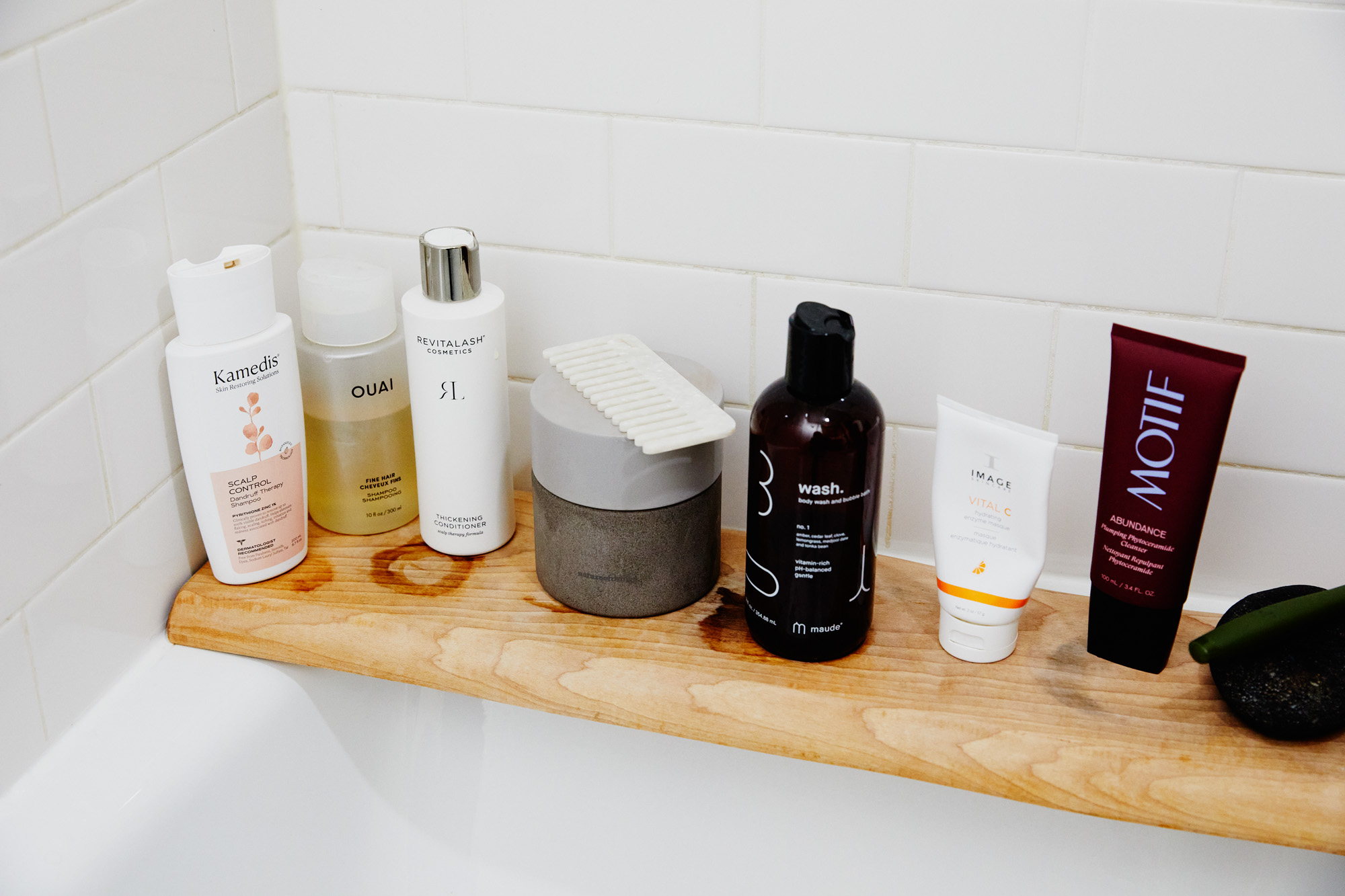 I love AmLactin for my feet. I’ll slap it on, put socks on, and when I wake up, it looks like I got a pedicure. It’s so much better than any of these new body lotions I’m seeing. I mean, no offense and good for them, but I don’t need anyone to millennialize bodycare for me. In the shower, I’ll rotate through my body wash, but right now, I’m using Maude Body Wash No. 1, which is nice because it’s pH-balanced and pretty gentle.