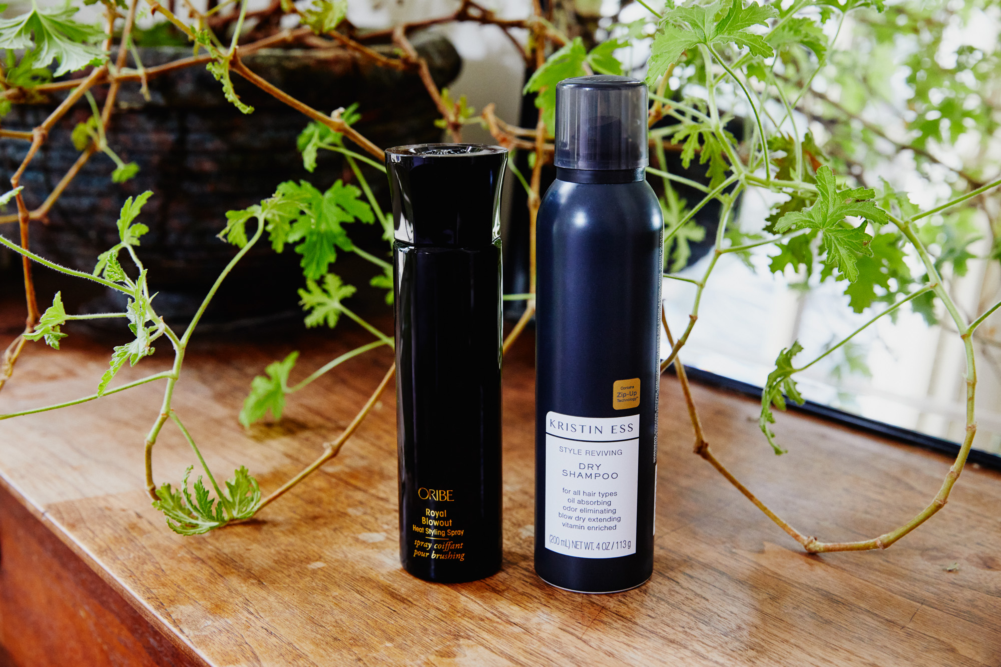 I use the Dyson to blow dry my hair, and I spritz Oribe Royal Blowout Heat Styling Spray on it so it doesn’t get too out of control. If I do want a little bit of shape, I’ll shampoo it, comb it out, hit it with the blow dryer at the roots, let the rest of it stay moist, and hand curl it.