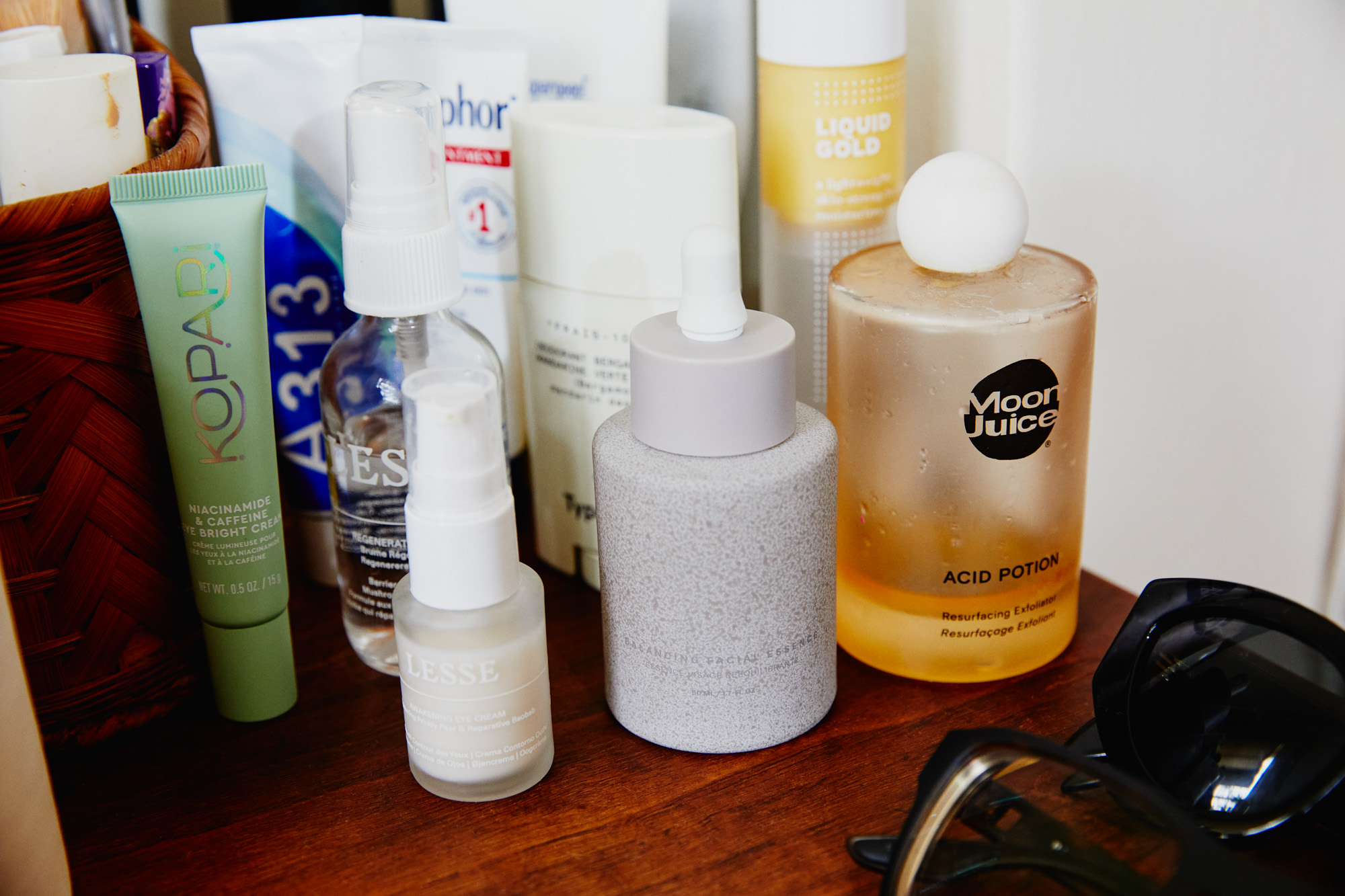 I use the DermaFlash DermaPore Pore Extractor every couple of weeks in the shower when my skin’s really soft. I went to a facial ages ago and the facialist used a similar tool, and I knew just from the feeling that it really got into my pores. I’ll vibrate it over my nose and across my cheeks, and it feels like it loosens up those deep set blackheads. Or sometimes I’ll use the Moon Juice Acid Potion AHA + BHA Resurfacing Exfoliator. It’s like $42 for a bottle that lasts me around six months; I think it’s one of the best deals in skincare.