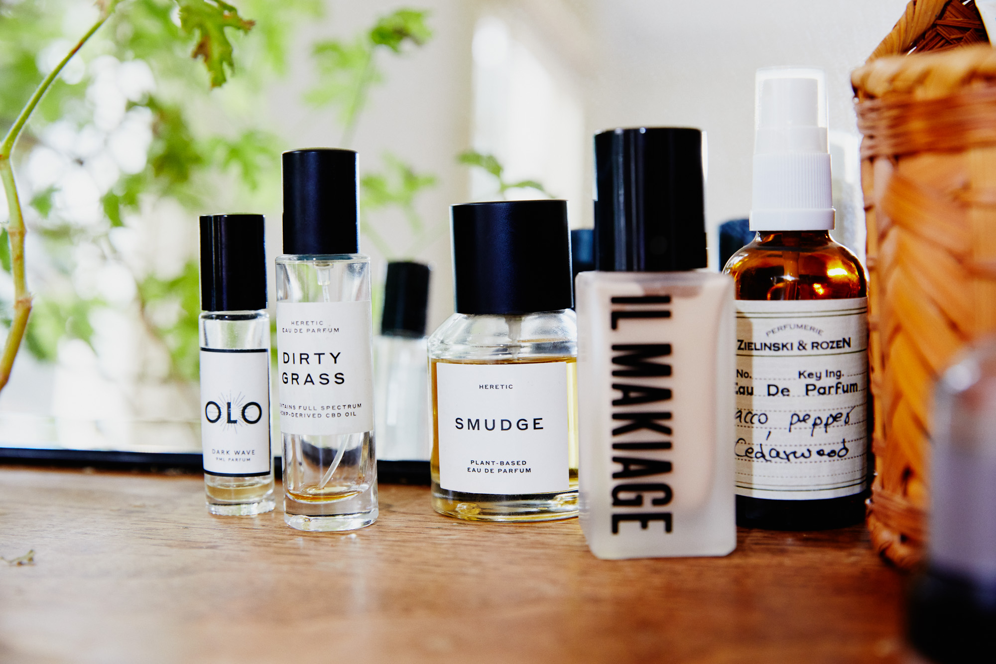 All of my fragrances are gender neutral. Even before I fell into my current perfume pattern, I was using Le Labo’s Bergamote 22. I have one fragrance that I absolutely love right now—Smudge by Heretic. I don’t have a great language for fragrance, but it’s a darker, smokier kind of scent—I get a comment on it every time I wear it. I also love this fragrance from Tel Aviv with notes of tobacco, pepper, and cedarwood. It’s from a perfumery called Zielinski and Rozen. They make soaps and fragrances. You can get custom things done, but I just got one of their pre-batched ones, and someone has commented on it every time I’ve worn it, too.