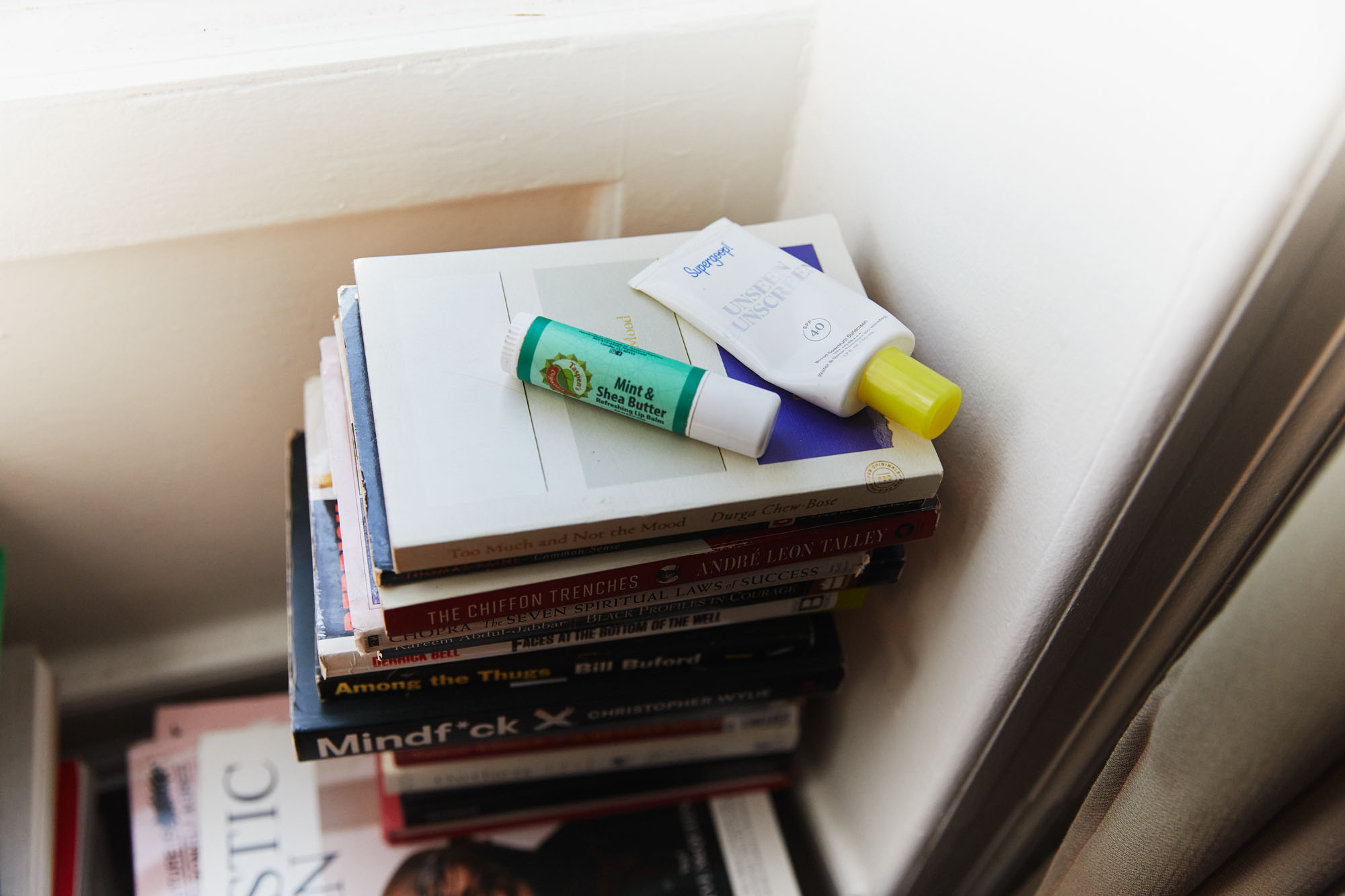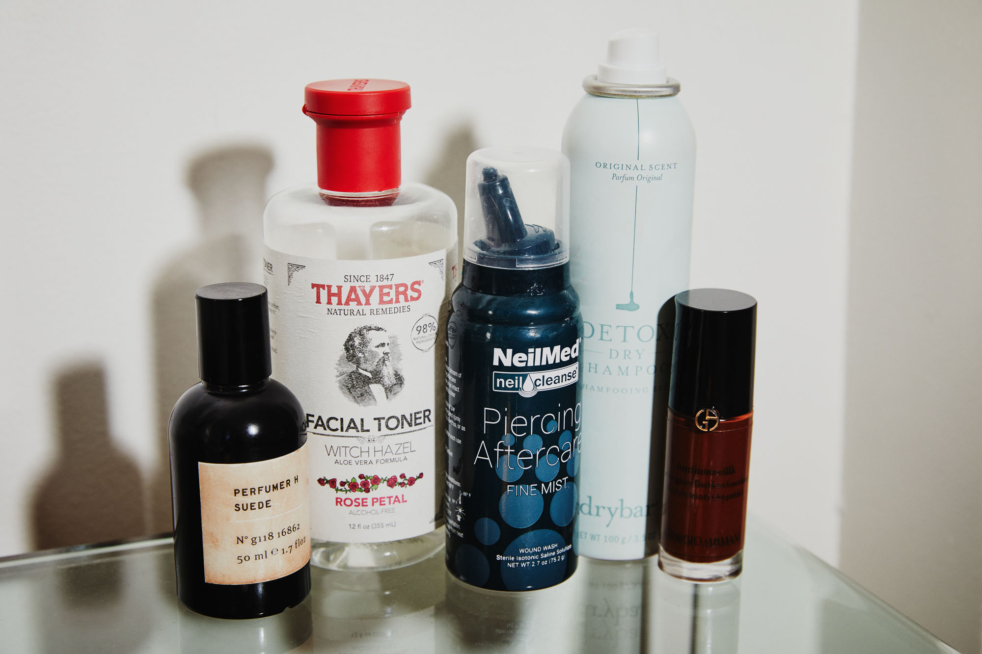 If I’m using lip gloss, it’s the Ami Colé Lip Treatment Oil, and for chapstick, I use Taspen’s Mint & Shea Butter Lip Balm. The company makes all-organic products in Colorado, and my friend who worked there was like, ‘You have to try this product.’ I thought it was some granola hippie bullshit, but it is the best chapstick on the market. First of all, it’s the size of an Elmer’s glue stick—and the chunk is important here. It’s so hydrating. I have so many of them in every bag, every purse, every coat. It’s also partly why I don’t wear any other lip products. I’m so content with this. Every other chapstick I’ve tried dries out my lips and gives me that itchy, addicting feeling where you need more. Also, Laneige has the best Lip Sleeping Mask. I think it’s amazing, but I refuse to spend on it. I bought it once, and then I was like, ‘This is not sustainable.’