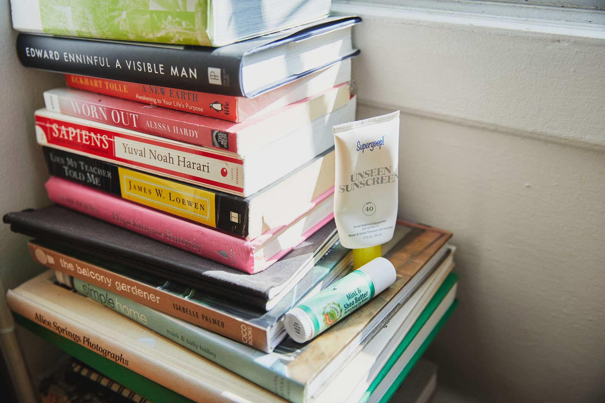 I don’t have a morning routine. I don’t even like to splash water on my face. I do everything at night—well, I’ll do a layer of Supergoop! Unseen Sunscreen SPF 40. It’s clear, and it’s really light. I think I learned about it from Brooke Devard. Then I’ll put a primer on and go to town with makeup, if I’m wearing some that day. You have to understand: After I got my skin clear, I was like, ‘If I can walk around with no makeup without being afraid, I will just be so grateful and so mindful.’