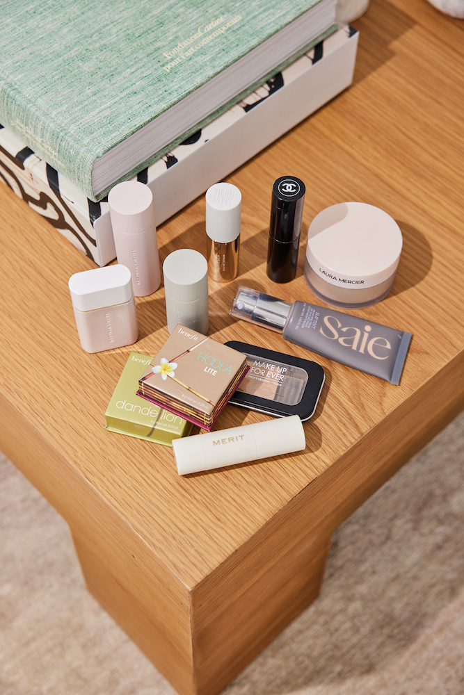 The MAKE Serum Balm Hydrating Lip Treatment in Halo Moon is one of the only proper glosses I use. Sometimes, I use Charlotte Tilbury Lip Cheat Lip Liner in Pillow Talk and add Merit’s Slick in Bel Air, their clear shade, on top. The combo is so good. It’s what I do if I’m going out or want more of a lip. But if I don’t want to have to deal with the liner, then I use the Kosas LipFuel Lip Balm in Flow, a warm beige. It gives me a little color without being messy.