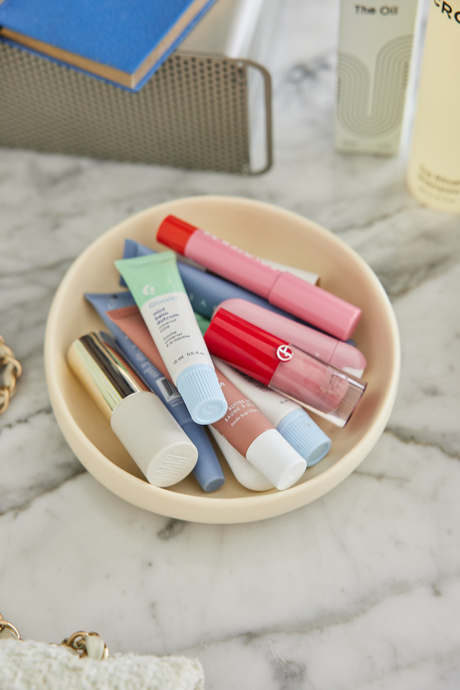 I have 1,200 lip glosses. [Laughs] Glossier’s Mint Balm Dotcom smells amazing, and I always have one within reach. Byredo’s lip balm in The a la Menthe d'Agadir is very soft and hydrating, and I love the packaging. Lesse’s Soothing Lip Balm is the one I use around the house. I also love Summer Fridays’ Lip Butter Balm in Vanilla and Covey’s Seal the Deal.