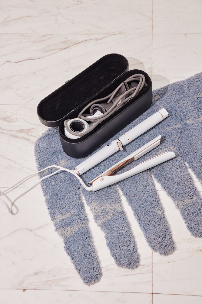 As far as tools go, I’ve been using the Drybar 3-Day Bender for 10 years. It’s a curling wand, and I usually travel with it. That said, I just started trying the T3 Switch Kit Wave Trio Curling Iron. It’s just a prettier version of the Drybar tool. We’ll see about the functionality. [Laughs]