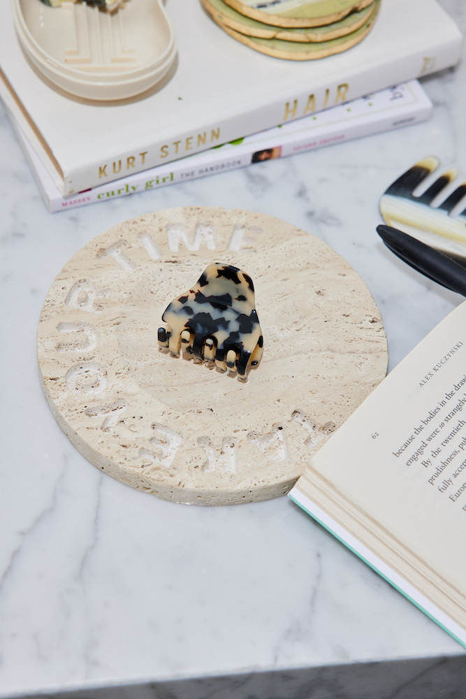 My hair gets very tangly, so I always say, ‘ABC,’ always be combing. [Laughs] That’s why I carry The Comb No. 001 in my little purse. And I am a firm believer that if you can brush your hair, you need a good brush. Brushing for health as a concept, I think, has been lost, and it really matters. You want to move the natural, healthy oils from your scalp down to your strands. My secret is that I’ll brush my dry hair at night and put a little dry shampoo in and, when I wake up, it looks exactly the way that I want it to. Of course, for Crown Affair, it all started with The Brush No. 001 and No. 002. No. 001 is your classic nylon and boar bristle brush, and No. 002 is a wood-pin brush that feels like a little scalp massage.