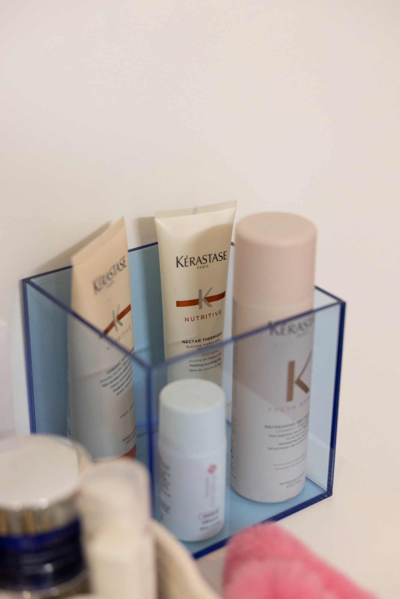 I am a Kérastase girl through and through. It’s the only range of products that’s helped my hair through all of the hell I’ve put it through. I’m finally at a point now where it’s healthy, and it’s thanks to their Bain Satin Shampoo, Last Vital Conditioner, and Nectar Thermique Heat Protectant. I love their Fresh Affair Dry Shampoo, too.