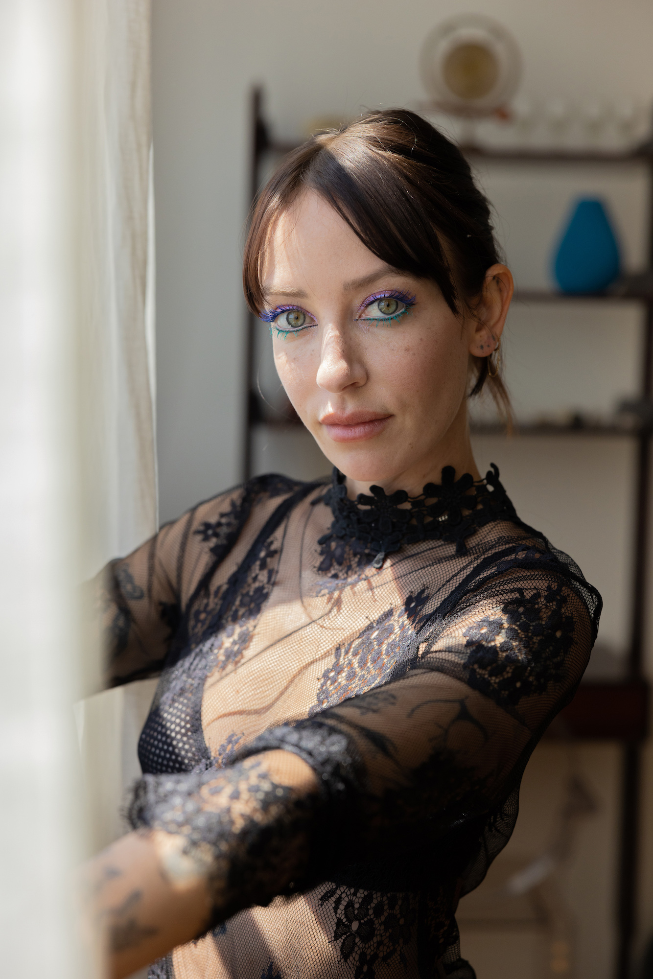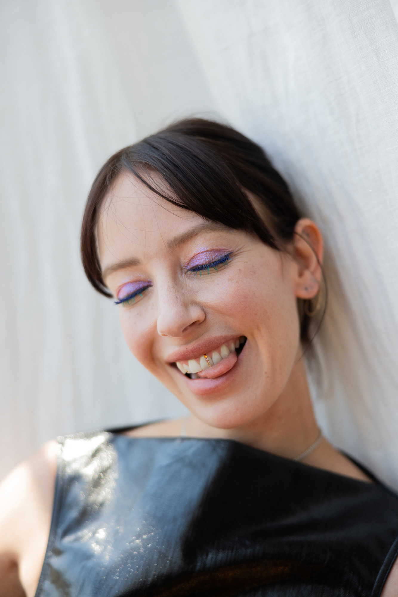 Purple’s my favorite eyeshadow color because it makes my eyes really green—but I honestly love all colors. I have about 30 eyeshadow pots from MAC—they make the best bright shades. Some of my favorites are Ready to Party, Smoky Mauve, Cobalt, and What's the WIFI? Sometimes I’ll wear them all at once. I also have the Mothership IX: Huetopian Dream Palette from Pat McGrath. It has a few shades that have a multidimensional vibe to them. For example, the purply one that I love looks blue from one angle but purple from another. I’m not super good with brushes, so I just go in with my finger and dab the shadows on. And I don’t use an eye primer because I actually find that shadow lasts much longer for me without any product underneath. I’m just very careful not to moisturize or put SPF on my eyelids first.