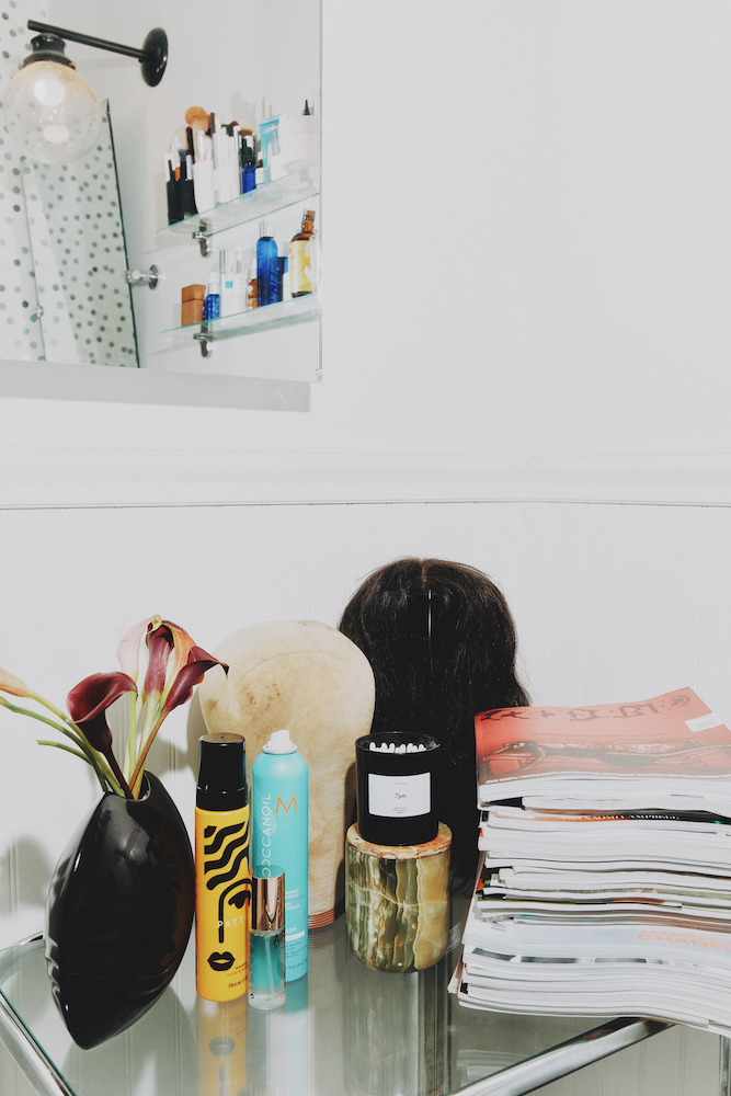 I have gray hair, so I go to Mickiela Mbatha for a henna-based dye. She does all of my wig installs and helps with my scalp, too. She recommended Phyto’s Botanical Scalp Treatment. It comes with a roller ball and really stimulates your scalp. Over the summer, I kept putting rosemary oil on my scalp, which was a mistake because you cannot put more oil on your scalp when you have dermatitis—it just creates more sebum. All summer, I kept wondering what was wrong with my scalp until Mick told me about Phyto. Pure squalene is really great for activated scalps, too. It’s an oil, but it’s probably the only one I can put on my scalp. I also really like Cyndia Harvey’s This Hair of Mine Scalp Serum and Biologique Recherche’s Lotion P50 Capillaire.