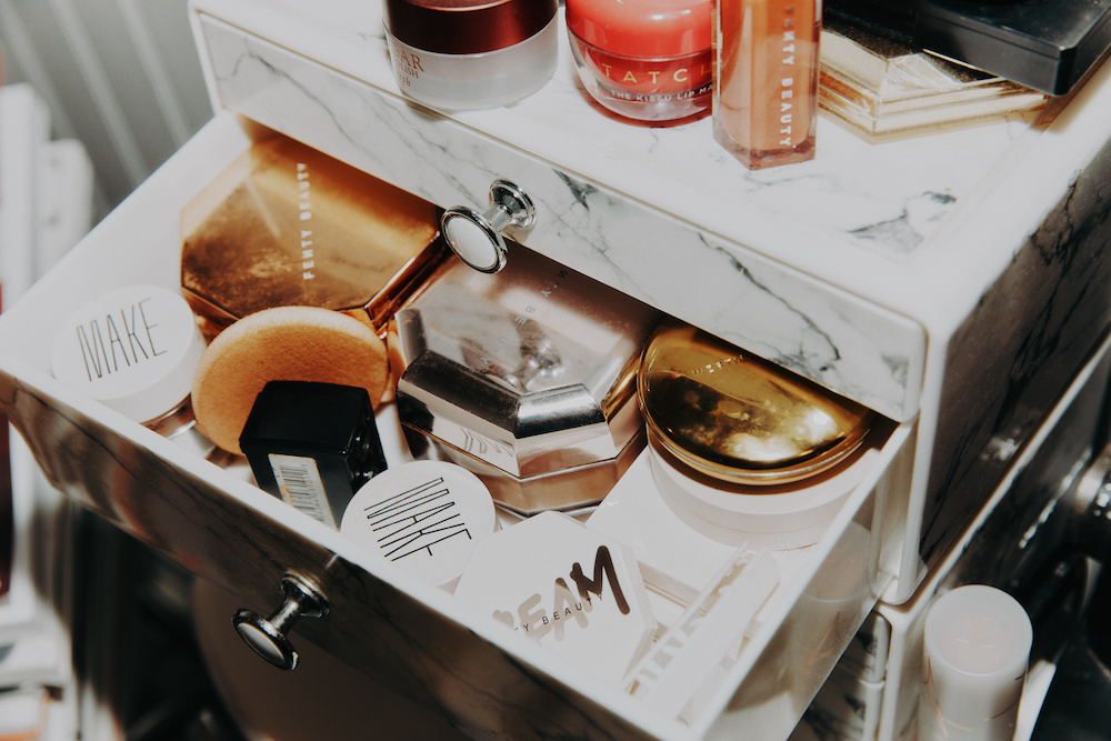 My usual look is very bronze and matte. My face is oily, so if you’re going to put more glow on me, I’m just going to look like I’m sweating. [Laughs] I use a lot of Fenty Beauty because I love Riri. Her Eaze Drop Blur + Smooth Tint Stick—I use shade 17—is amazing. Using it is kind of like Photoshopping your face IRL. It really does what it says and gives you this really smooth finish. I use the Pro Filt’r Instant Retouch Concealer in 345 underneath my eyes to cover my bags and circles. I use her Pro Filt’r Soft Matte Longwear Foundation, too, but I need to figure out my exact shade because I’ve tanned too much and don’t know it anymore. Actually, the Laura Mercier Tinted Moisturizer in Tan is a really good go-to when I don’t know what color I’m at.