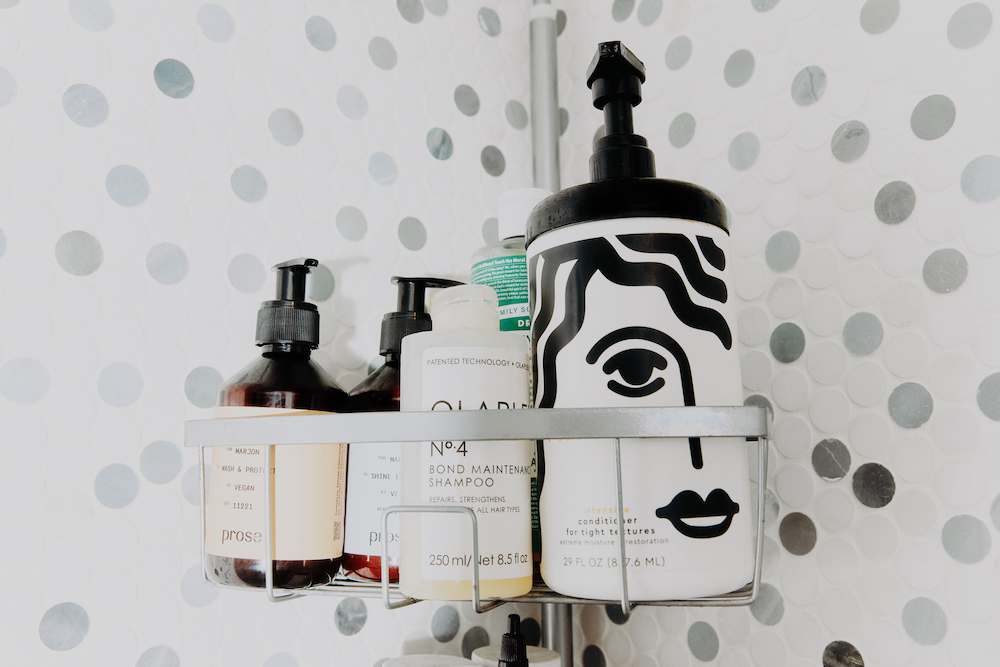 I like to keep wash day to Sundays because that feels like the start of a new week and I have more time. I start off with the Philip Kingsley Flaky Scalp Calming Toner or Charlotte Mensah’s Manketti Oil Salt Scrub and leave it on for 10 to 15 minutes. I’m dealing with dermatitis, so my scalp will have plaque or general product buildup, and it really lifts whatever has developed there. Then I’ll use the Carol’s Daughter Wash Day Delight Water-to-Foam Shampoo. I like that the bottle has a nozzle because you can really get to your scalp. It’s really, really lightweight, and it smells like roses. I’ve started using Charlotte Mensah’s Manketti Oil Conditioner. I met the founder Charlotte, who is incredible, recently because Palm Heights carries the product. My curls have been very dry recently—it’s just a part of aging, I guess—but this has done a great job.