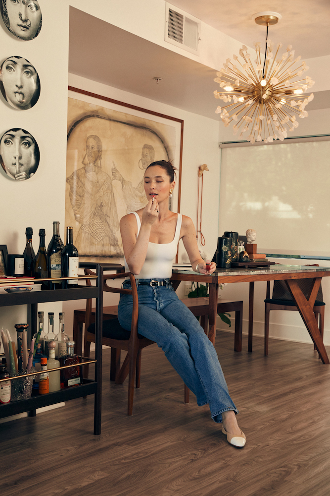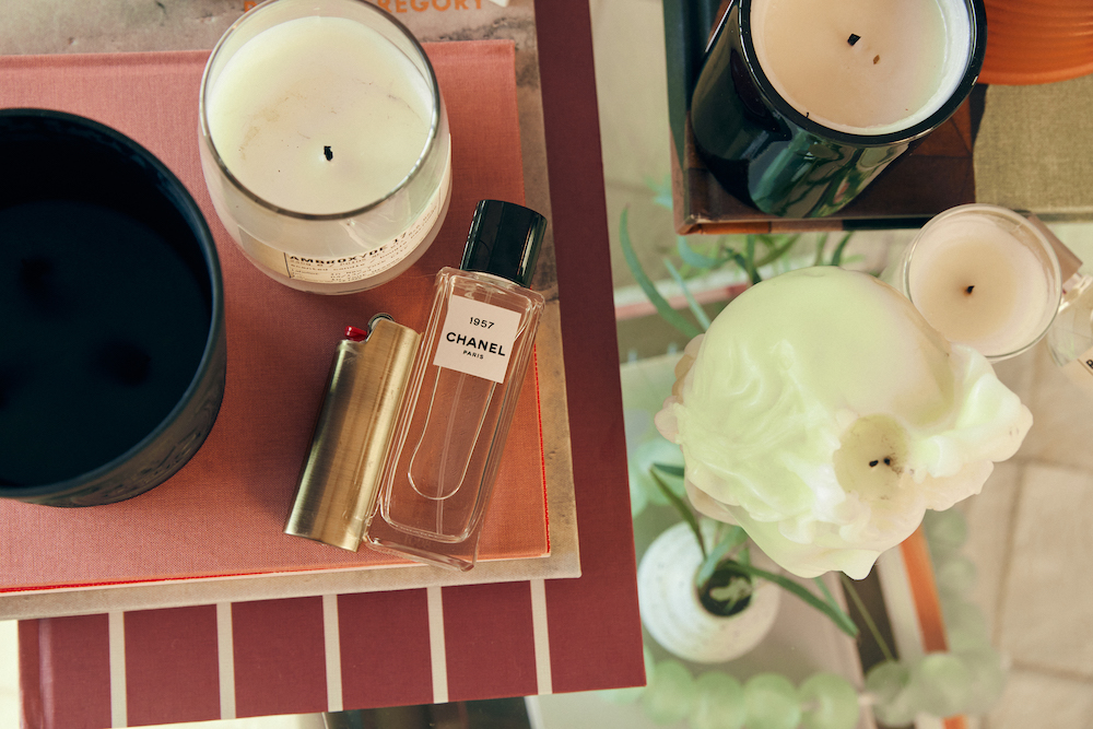 Home-wise, I love Fornasetti candles and use the vessels for my makeup brushes and toothbrush when I’m done with them. They’re so beautiful. Kelly Wearstler gave me a large Orange Blossom Candle for my birthday recently. It’s so pretty, and it smells amazing.”