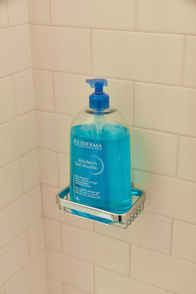 I really like Bioderma’s Atoderm Shower Gel because it’s light. Every two weeks or so—there’s no rhyme or reason to it—I exfoliate my whole body with Goop’s GOOPGLOW Microderm Instant Glow Body Polish. My brother actually gave it to me. I like that it rubs off quite easily because some scrubs are nearly impossible to get off. My skin is always so soft after I use it.