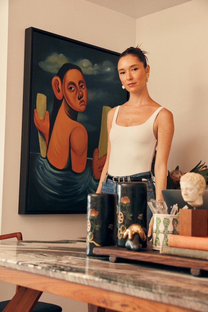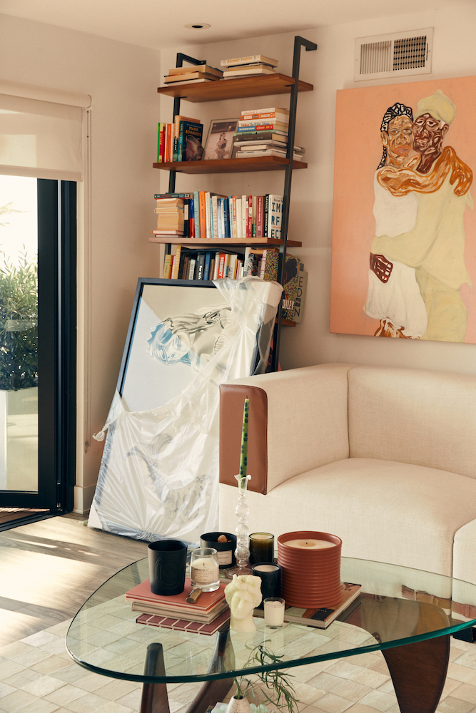Originally, I wanted to start a brick-and-mortar gallery in LA. But then I landed on a pop-up model to showcase art in different places. I wanted my company to focus on living artists—and especially those that are emerging. That’s the art that I like to collect for my home, too. I have a big piece by Honor Titus that he made in 2019. Umar Rashid was one of my first purchases. The pink piece is by Sissòn. I also love the work of Salomón Huerta. I could keep going forever. [Laughs]