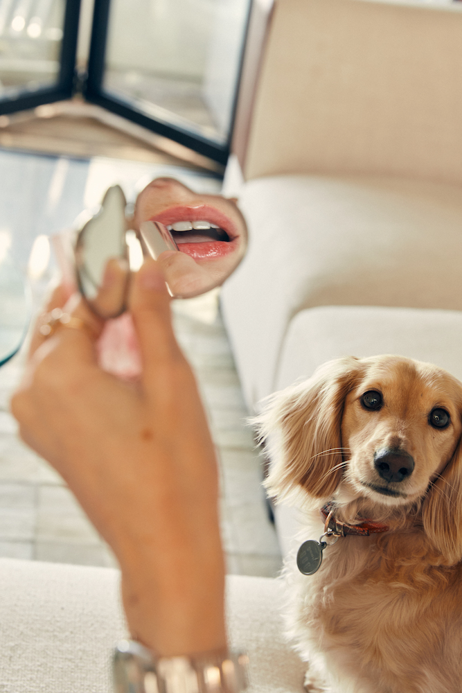 I’m obsessed with the Dior Addict Lip Glow Oil in Cherry. It doesn’t dry out your lips at all. And I recently started using the Dr. Lara Devgan Platinum Lip Plump—it’s crazy how well it works. When I was in Paris, I found Homeoplasmine Ointment. It’s the best lip balm out there. It’s a little thicker than Aquaphor. If I have a dry patch on my face, I use it there, too, and it doesn’t make me break out.