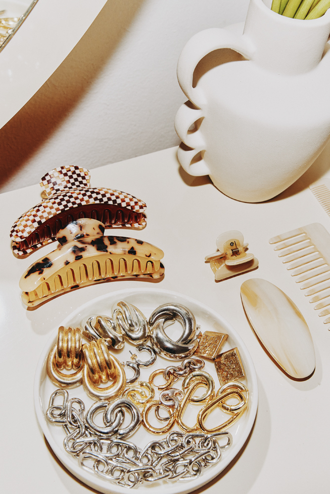 As far as post-washing and styling go, my absolute favorite Ceremonia products are the Pequi Curl Activator and the Style Refresher. I like to use the Pequi Curl Activator on the last four days before I wash it. It’s great because it does activate your curls, but the serum doesn’t harden or grease up your hair. It’s not like a gel, where your hair automatically sets or starts to flake. After I’ve slept on my hair like this, I just spray the Refresher to reset my curls. Similarly, OUAI’s Wave Spray is really great. I use this a lot at the beach or after I get out of a pool if I want to keep my waves. OUAI’s Hair Oil is so good, too. You only need a tiny amount and it gets rid of your fly-aways.