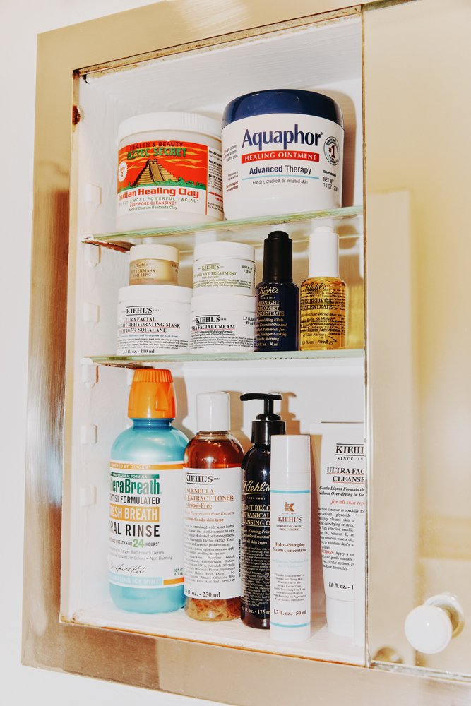 My Mount Lai Jade Gua Sha broke so I need to get a new one, but we all want to highlight the things that we like about our face right? I like my cheekbones, but I’m 36 years old, so I don’t know how much longer I have with them. [Laughs] The gua sha helps me draw them out. Normally—when it’s not broken—I use it every other day for the length of three songs with one of my Kiehl’s face oils. I’ve tried it with Aquaphor and that was fine, but the face oils give me more of a slip to work with.