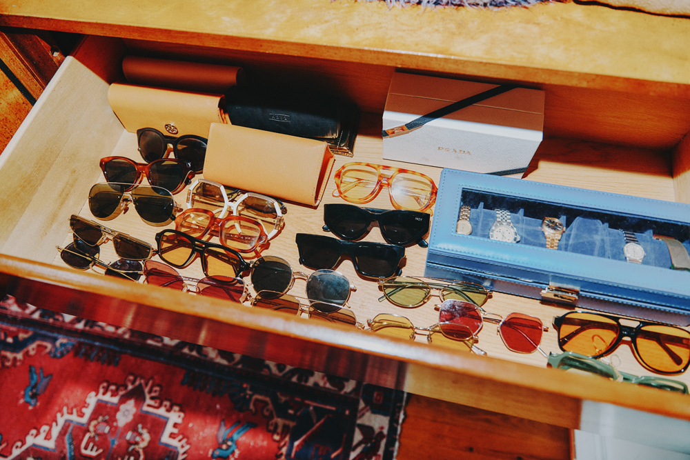 Blush is my favorite makeup product of all time. I like putting a little bit on my forehead, so it looks like I’m sunburnt without actually being sunburnt. I have every color of the Westman Atelier Baby Cheeks Blush Stick and I just rotate them based on how sallow my skin is looking. Merit’s Flush Balm Cream Blush is also nice to apply. I especially like Mood, a really dark burgundy color that gives you this post-sex sort of flush. Clé de Peau Beauté’s Cream Blush in Joyful Pink is another blush pot and lasts a really long time. The only powder blush that I have is Dior’s Rosy Glow in Coral, which is low-key a favorite color to wear of mine. It looks bright orange in the palette, but it’s flawless and looks great in the summer.