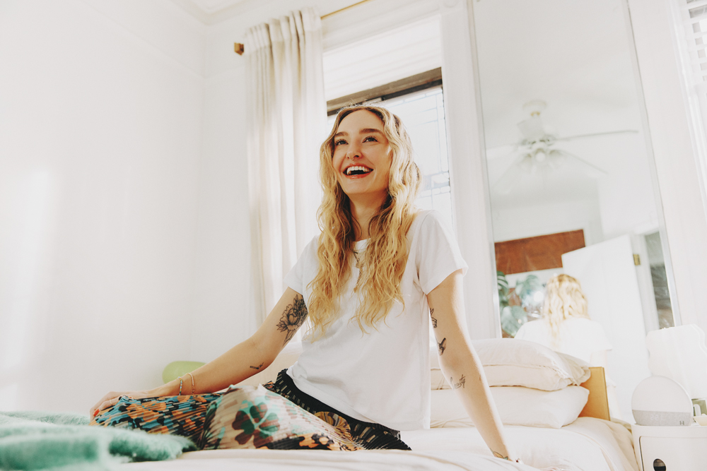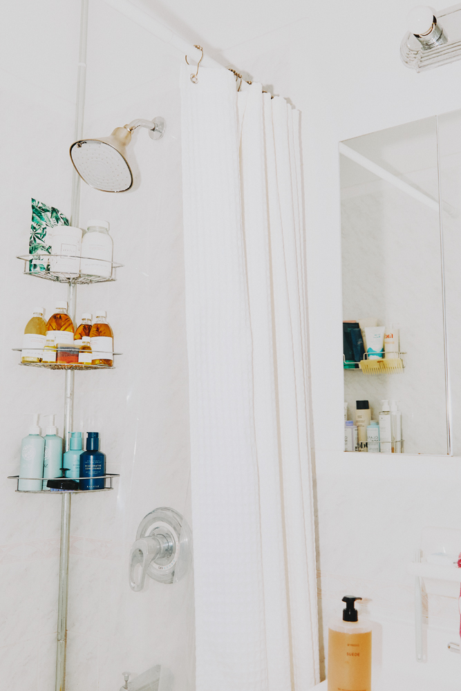 I love how accessible Odele is as a whole. Their Clarifying Shampoo is so good. The Oribe Hair Alchemy Resilience Shampoo and Conditioner are really great for blondes in particular. I also use the Olaplex No.4P Blonde Enhancer Toning Shampoo once a week because my hair tends to get brassy really quickly. Plus, my dad’s a redhead, so I have some red undertones and I don’t like that. And because I live in New York and the water is hard, I have the Canopy Filtered Showerhead, which I feel like helps keep my blonde really bright.