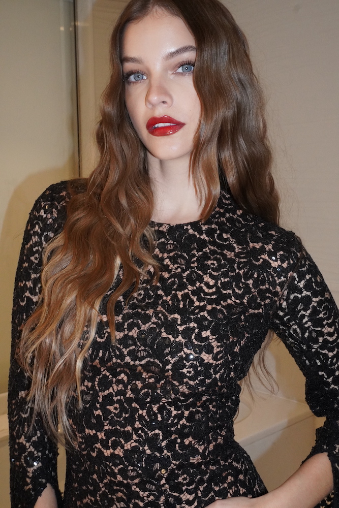 Marc Eram styled Barbara, and Owen Gould did her hair. Owen gave her these pretty waves using a Hot Tools iron and some extensions. I saw some LolaVie around, too. Paired with the makeup, the hair looked absolutely stunning. We were all really happy.