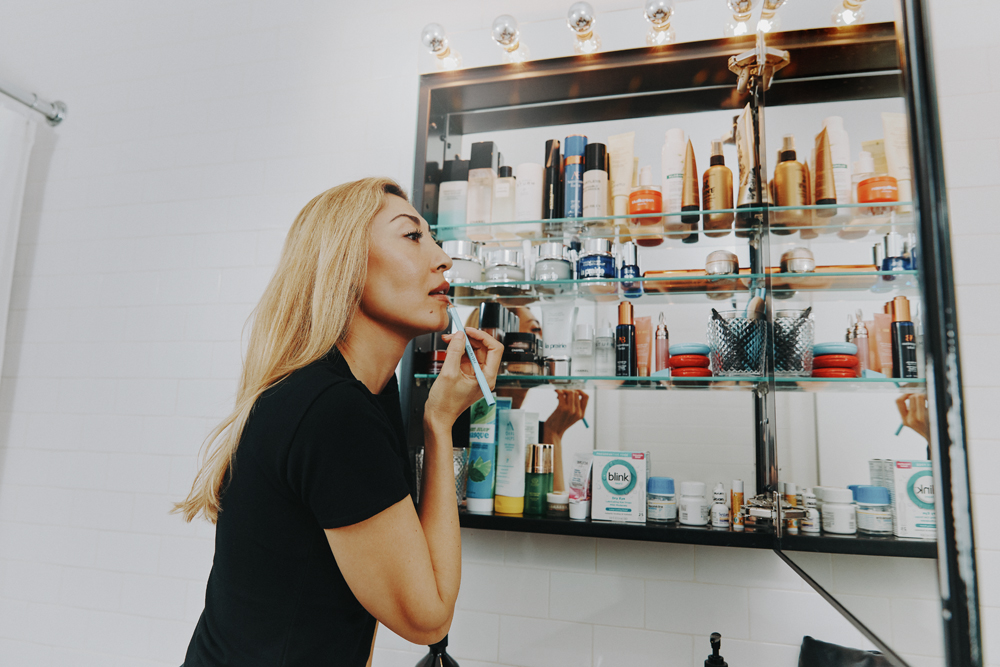 On the other hand, I did Botox on my forehead and I really disliked it. It did something weird to my eyebrows. I’ve also gotten Botox in my massaters because I clench my jaw at night. That worked a couple of times, but I also don’t like feeling dependent on anything, so I haven’t been back. There was a time where people went nuts with Botox and fillers, and I think we’re starting to come down from that. Instead, I try my best to use devices like the NuFace. If I use it often enough, I really do see a difference with it. Actually, I like to do one side of my face first just to prove to myself that it works, and the difference is so stark.