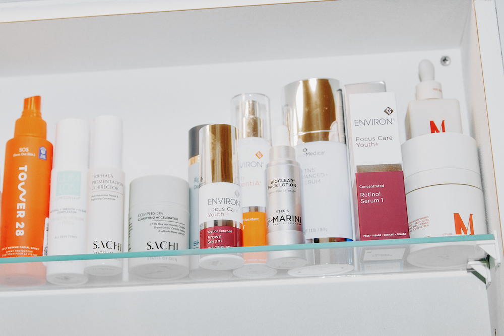 Last summer, I was trying to get rid of the hyperpigmentation from a bunch of acne flare-ups on my chin and between my brows. I went to Lauren Hackney Behringer for one Clear and Brilliant session and two microneedling sessions, and I saw a significant difference in the overall texture and discoloration of my skin. That experience really kicked off my obsession with microneedling. I had already used an Environ gold roller by then, but the moment that I got it done professionally, I was hooked. After microneedling, you’re so red that you look scary, but she used exosomes, which help increase cell turnover faster, and I was completely healed and glowing in maybe two days. After that experience, I started looking up microstamps, which give me more control and go deeper than microneedling pens. I figured that if I could get the exosomes myself, I could microstamp my own face. I found a company that sells exosomes, and after I was very persistent, I bought a bunch in bulk and they came shipped in dry ice—if my fridge ever dies, I’ll be livid.