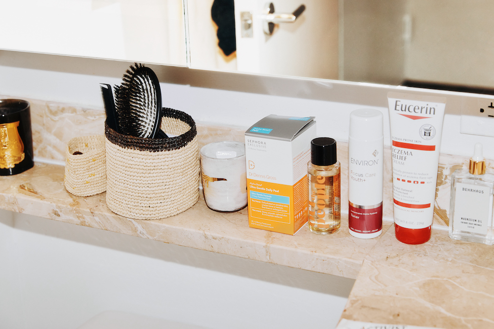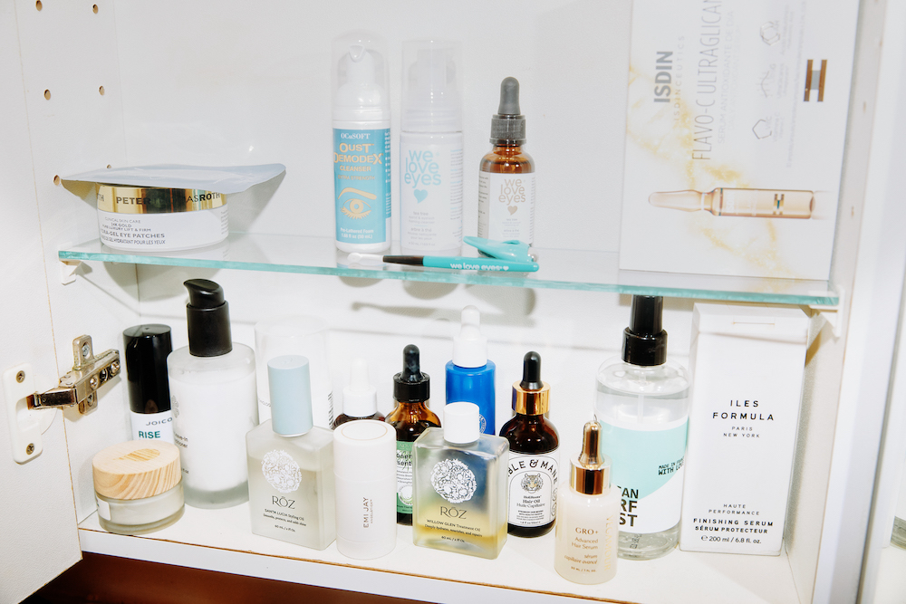I’ve been going to my dermatologist, Dr. Rebecca Kleinerman, since I was 17 or 18 and had pimples. I recently got Botox with her on my forehead. As far as aestheticians, I’ve been seeing Raquel Medina-Cleghorn for at least four years, long before she was Raquel New York. She’s a master sculptor. Her facials can be pretty expensive and long because I’m doing the whole thing with her—buccal, microcurrent, everything—so I probably see her twice a year. I also love Elizabeth Grace Hand, the founder of Stallë Studios. I see her every other month and I always leave glowing. She does a great job of cleaning out my pores, and she also does buccal massages.
