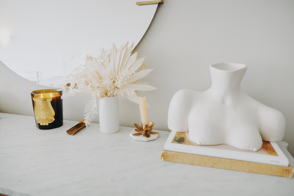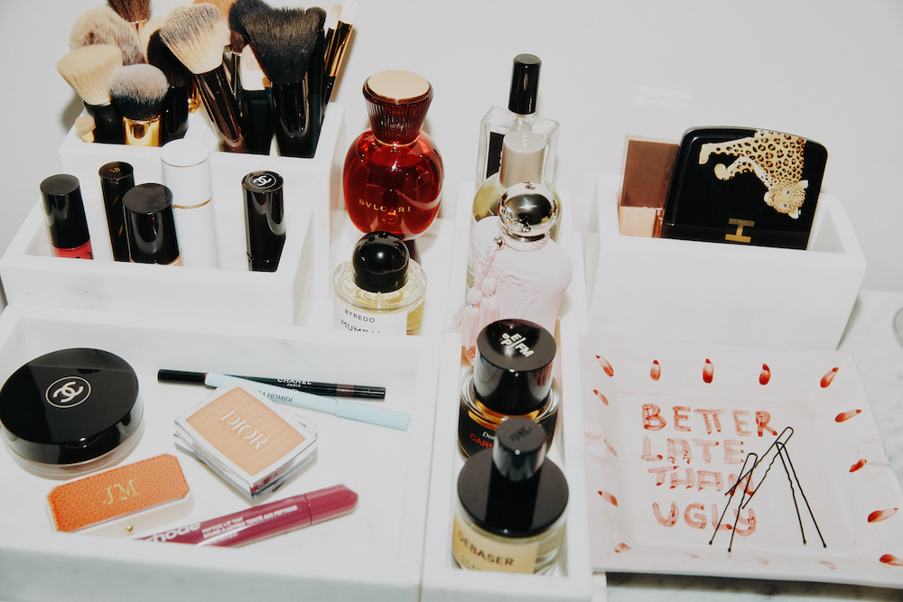 When it comes to my personal scent, it really depends on my mood. We have different eras in our life, right? At a certain point, I definitely had a more masculine, woodsy phase where I was wearing Le Labo’s Gaiac 10, which I got in Tokyo, or Byredo’s Mumbai Noise. That said, since I was 16, my OG has been Un Bois Vanille by Serge Lutens because I love a musky vanilla. But I never want to smell like a dessert. Recently, my thing has been blending perfumes. I’ll mix a vanilla with a floral like Frederic Malle’s Carnal Flower, or recently, my signature mix is Baciami Bvlgari and Delina by Parfums de Marly. It’s a sweeter scent for sure, but it’s not dessert.”