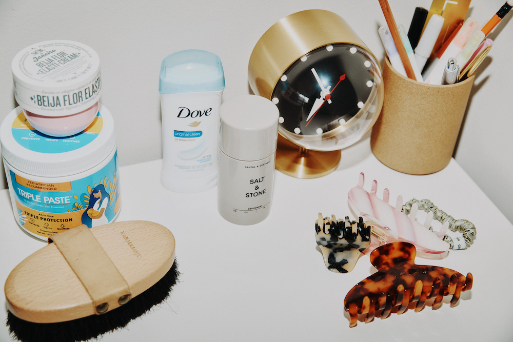 I feel most beautiful with my hair up, so I need less in this area, but I have a ton of breakage from the head pieces I have to wear for ballet. I told my stylist, Marshall Lin, that I had a halo of baby hairs, and he convinced me to get keratin. It’s honestly helped a lot. In general, my hair grows quickly and I have to get haircuts often, which is not my favorite, but I love Lin. Since I got keratin, my routine had to change. I’ve been using the Virtue Recovery shampoo and the Olaplex Nº.4 Bond Maintenance shampoo; I’m not super loyal to one brand. Pai-Shau’s Replenishing conditioner is my favorite so far. Nothing else has made my hair this soft. Oh, and I feel like my hair has more bounce when I use Crown Affair’s Renewal hair mask.
