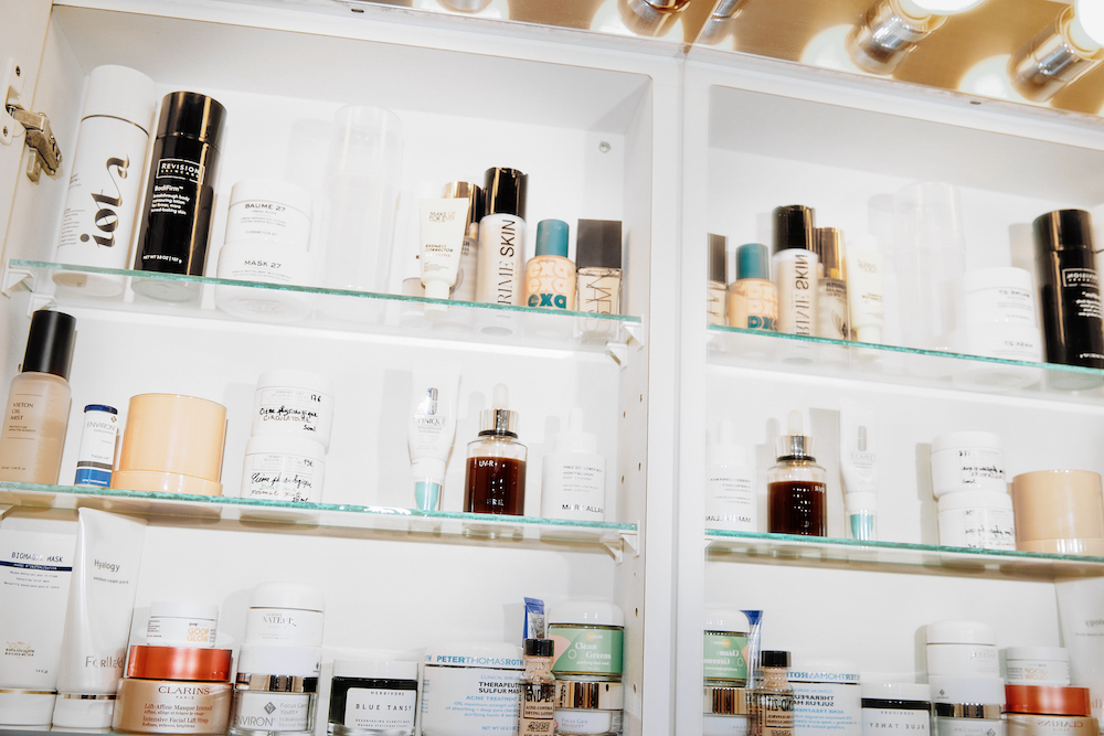 My cleansers are usually really mild. I use CeraVe’s cream-to-foam cleanser to take off stage makeup. I also love Sofie Pavitt’s Clean Clean cleanser, too. Day-to-day, I really like the Hyalogy P-Effect Clearance Cleansing Wash as the first step of my double cleanse, followed by the Hyalogy Creamy Wash. I never feel stripped after I use it. Every two to three weeks, I’ll do a major skin clean out. I alternate between the KaramMD Polish Enzymatic Exfoliator and the Jan Marini Bioglycolic face cleanser, which is pretty strong. I’ve learned from experience that I can only keep it on my skin for 30 seconds to a minute before I have to take it off; if I leave it on longer, I end up very red.