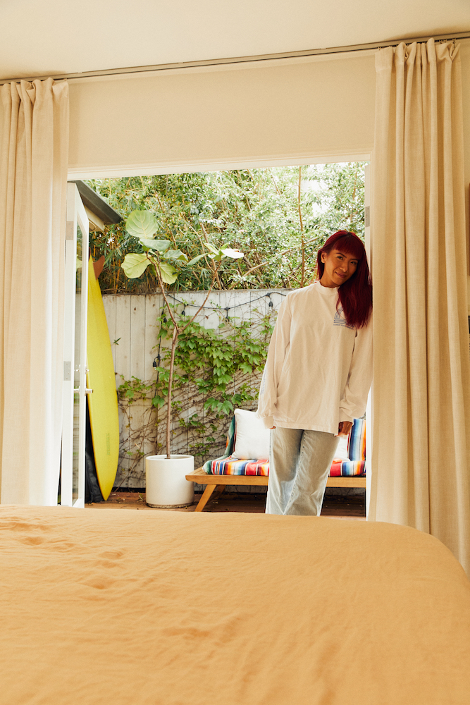 “I was born in Hong Kong, but my mom moved me and my brother to New York when I was four years old. Growing up here, I thought I wanted to be a cartoonist, but I got really into fashion and ended up going to FIT. Straight out of college, I was the PR manager at Archetype Showroom. I think I made something like $28,000 a year; I was a hostess at Bond Street trying to make ends meet at the same time. Immediately after that I dipped my toes into other brands, like Pamela Love and Kimberly Ovitz, and quickly realized that fashion was not my thing. I went on to be the production manager at Paper’s Extra Extra, one of the first experiential marketing agencies out there, and then later landed a production director role at The Gathery, where I helped scale events, from small intimate dinners to large-scale conferences like Sophia Amoruso’s Girlboss Rally. The events industry is tough though, and I suffered from burnout almost immediately. I had been DJing as a side hustle too. I’ve been lucky enough to DJ for some of the best-in-class brands like Valentino and Lamborghini, but at the time, I was exhausted. I got really into wellness and taking care of myself, and I started learning how to surf in Rockaway Beach. After that, I quit my job to open up my own pop-up surf shop called The Notion in the Rockaways. The surf industry was—and still is—so dominated by men, and I wanted to create a space for female surfers.