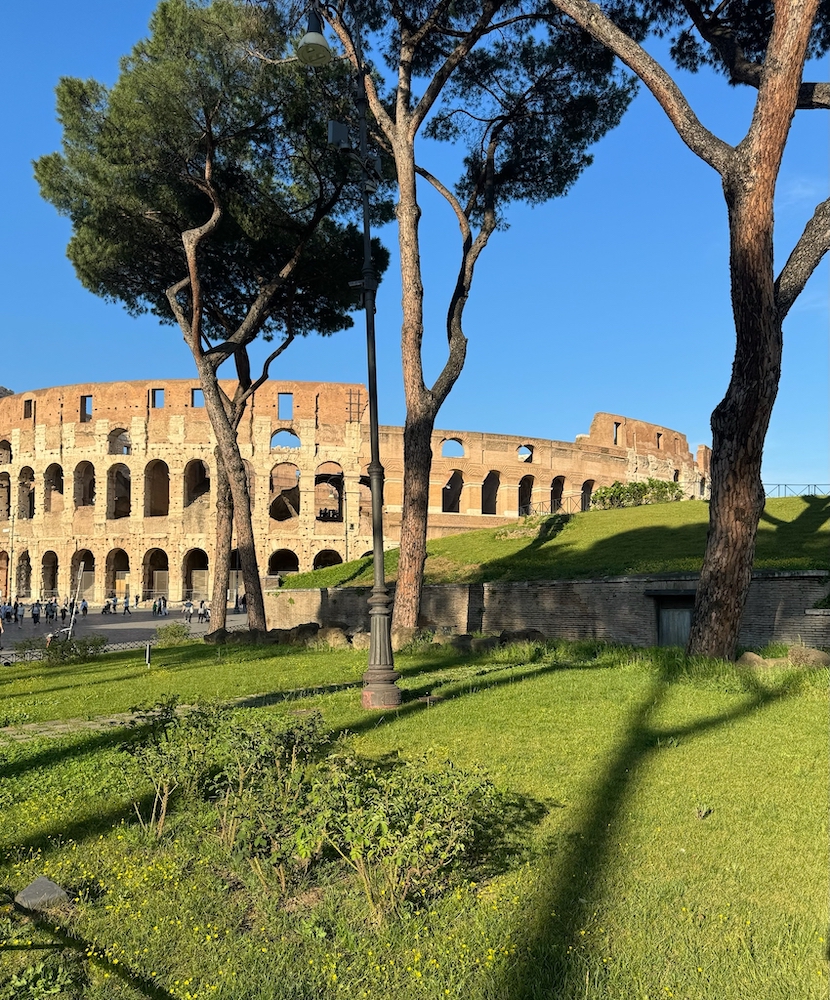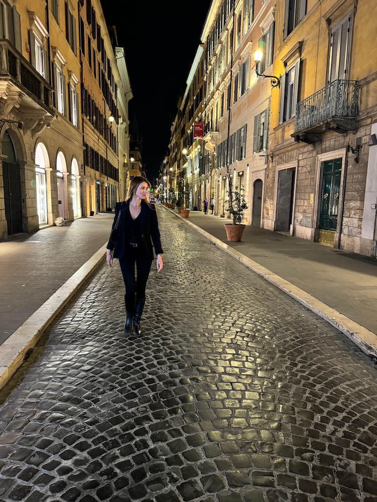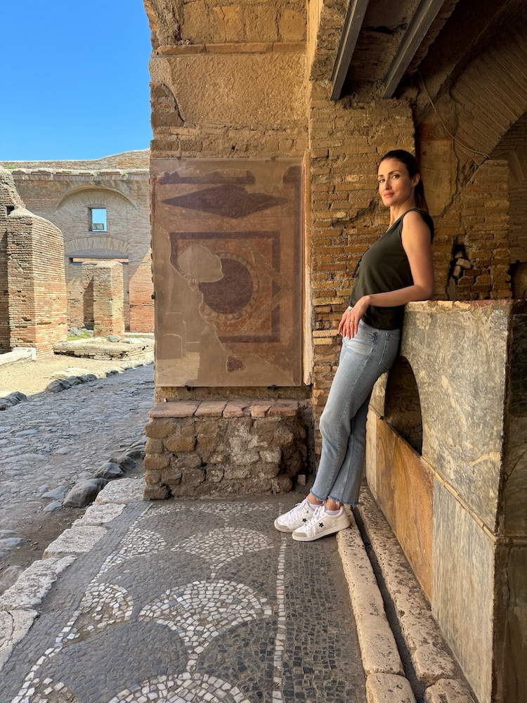 The next day, we did a tour of the Colosseum. I couldn’t walk inside of the Colosseum the last time I was there, but Tod’s (yes, the fashion brand) recently finished their renovation of the site. We were also able to visit Ostia Antica, too. It’s an archeological site about an hour and a half outside of Rome. It’s one of the few places where you can go and see how ancient villages were set up and how Romans lived—where the little storefronts were built, and where the old bath houses sat. You can still see the intact ancient mosaics on the ground. That same day, we went to the Castel Sant’Angelo, the Mausoleum of Hadrian. Some people don’t think it’s as important as the Colosseum or other important sites, but I think that it’s incredible to visit, especially if you can go at night and see the city all lit up.