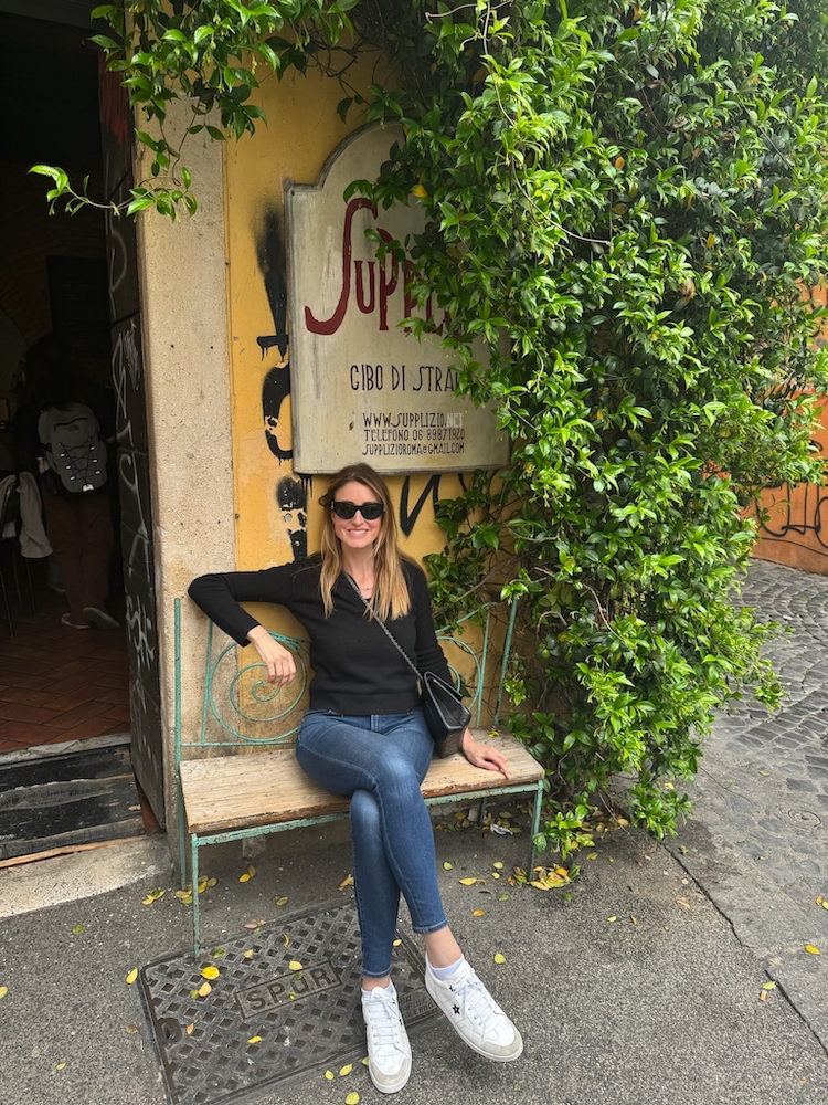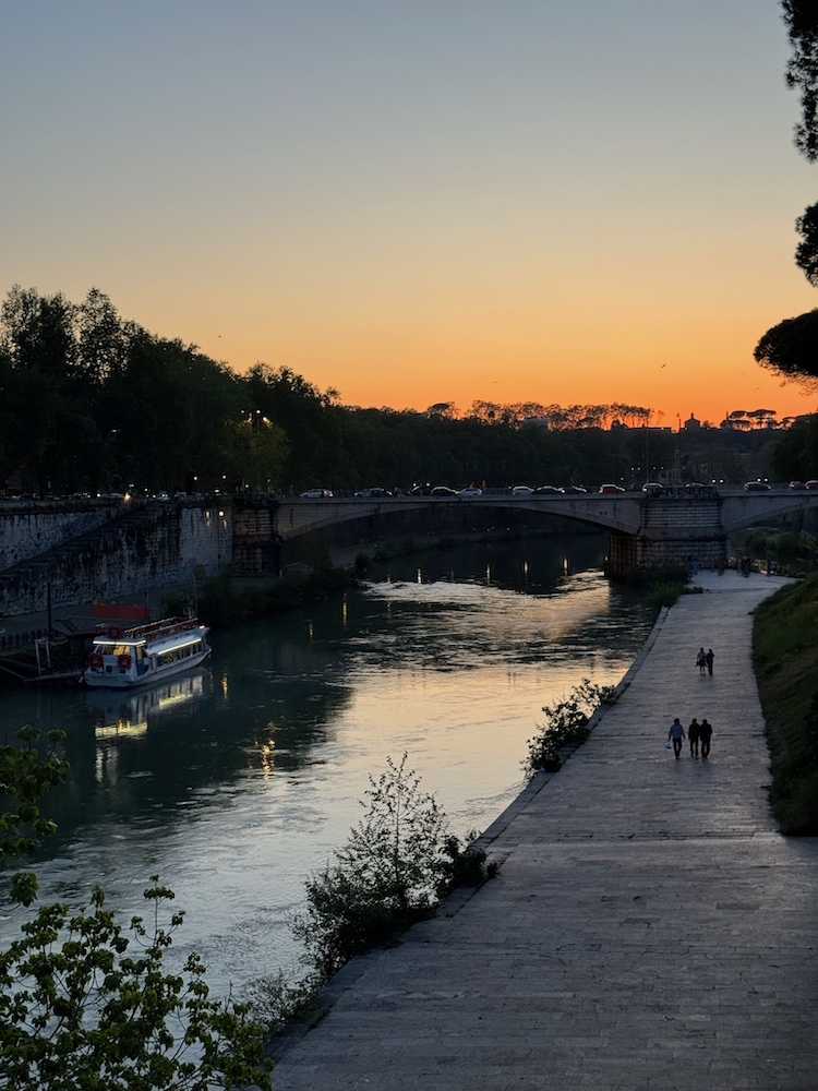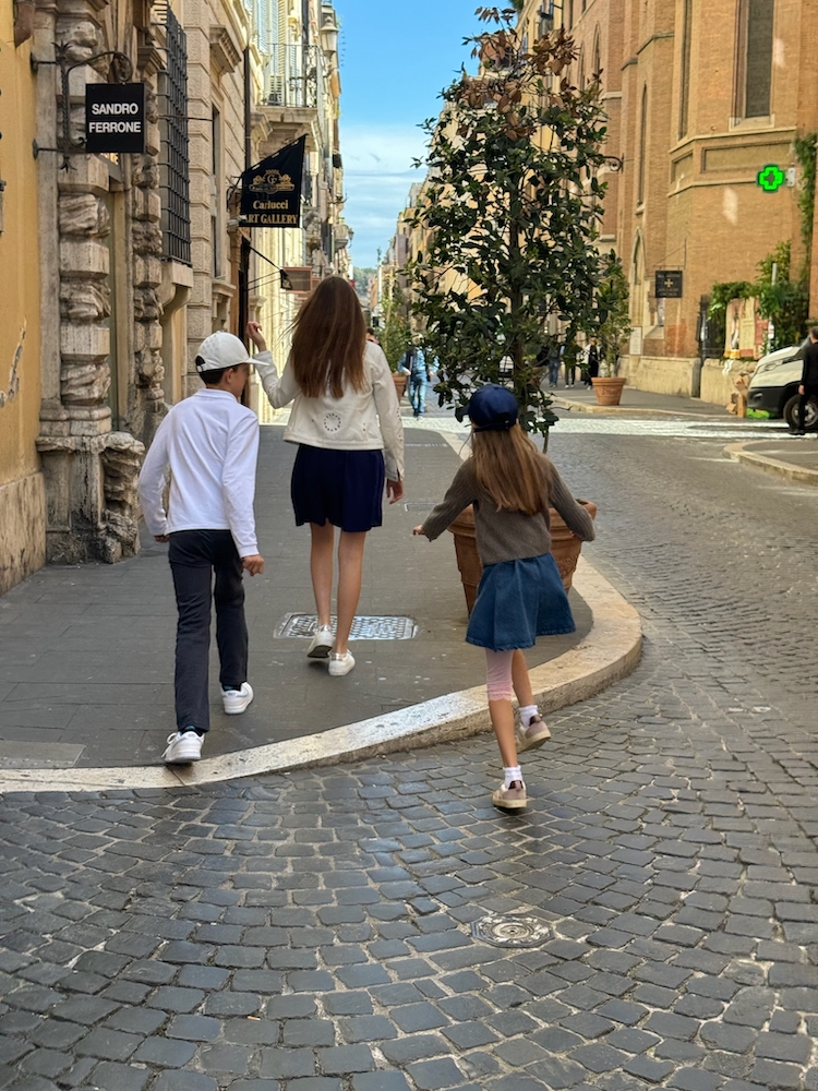I’m back in Paris after my trip to Rome! Every couple of months my kids get two weeks off of school (it's a French thing), and I work remotely for my skincare brand Furtuna Skin, my husband and I try to take the kids some place new. This time around, my husband and I ventured off to Rome with our kids, who had never been to the city, before heading off to La Furtuna Estate, the 800-acre farm where we forage all of the ingredients for Furtuna Skin. Rome in the Spring is just so beautiful. It’s the best time of the year—it’s not too cold and not too hot. The day we arrived we did a walking tour of Trastevere, which is a neighborhood in the heart of Rome that gives you a spectacular view of the city. You can basically see all of the Colosseum. We went in the afternoon, but if you go at noon, they shoot off a cannon—that’s how people knew it was lunchtime back in the day. We finished out the day with a pasta making lesson from chef Fabio Bongianni, who has taught pasta lessons for a lot of famous people. We made cavatelli, ravioli, cacio e pepe with linguine, and spaghetti with a red sauce and sausage. The cooking class is on a little island, and when you’re there, chef Bongianni takes you outside on his balcony and you can see the oldest bridge in Rome.