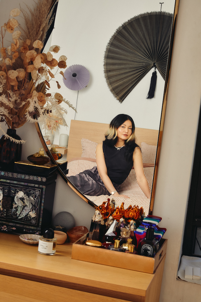 Matiere Premiere’s Crystal Saffron has been a favorite of mine for the past two years. It’s what made me fall in love with saffron. It’s airy and sweet in a confusing way, and it has this kind of glassy texture that’s bouncy and translucent that I think is really beautiful. Bond No.9’s Chelsea Nights is also a saffron scent. It’s so spicy and warm and enveloping and sexy. It’s really nostalgic for me because I wore it on a really crazy trip I took to Vancouver two years ago for a date. We met on Hinge. He’s from Australia and was on tour with his band. We chatted every day for a month and then he randomly said, ‘Our last four days are in Vancouver before we fly back to Australia. LOL. If you want to come.’ It was such a fun, sexy time. We still talk, and whenever I smell Chelsea Nights, I think of him.