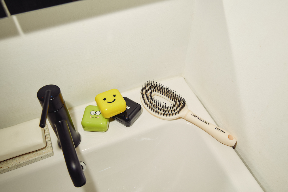 I will say that I’m a shedder—there are nests of my hair in the shower—and whenever I brush my hair, it’s like a serving of spaghetti on a brush. Because of that, I really love my Knotty Brush from That Girl That Did Your Hair. It has a donut hole in the center that makes it easy to pluck the hair out and throw it away.