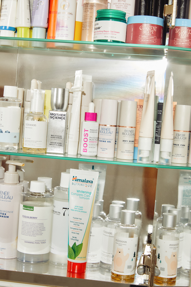 TikTok influenced me to buy Mixsoon’s Mung Bean essence—a lot of K-pop idols use it. It's considered the vegan alternative to snail mucin, which makes some people break out. Since using it, my skin feels more bouncy and plump. I also have Mixsoon’s Soondy Centella Asiatica essence, Galactomyces Ferment essence, and Bifida Ferment essence. You layer them all. My skincare routine takes a minimum of 20 minutes. [Laughs] I’ve just found that it’s best to rehydrate my face with lots of thin layers of moisture.