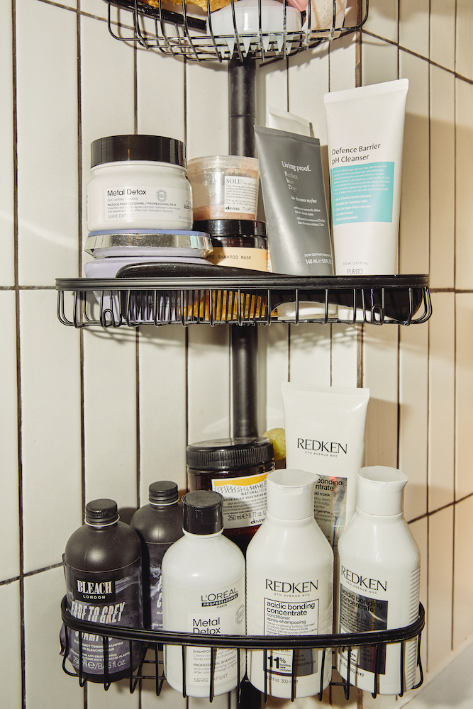 After I get color, I use K18’s Biomimetic hair mask every day for two weeks. It’s a great bond building treatment. I mean, it’s expensive, but it really works. After my hair’s been bleached, it feels like overcooked spaghetti when it’s wet, and the mask makes it feel like normal, human hair again.