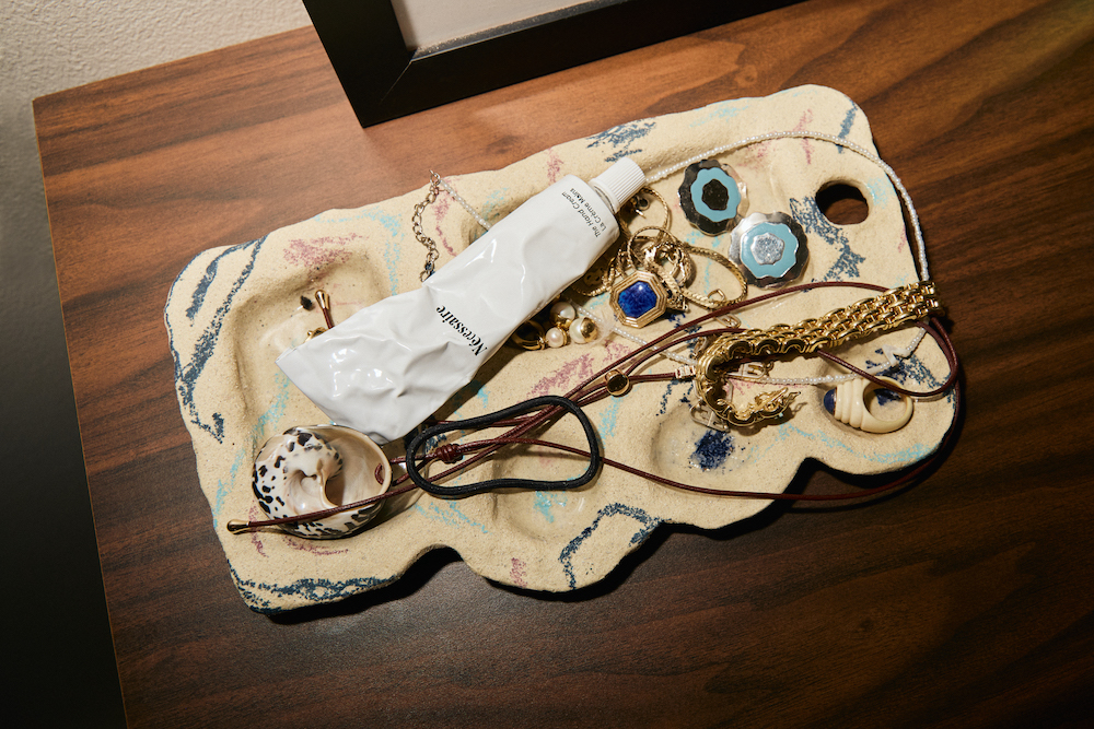 I feel no allegiance to any hand cream other than Soft Services’ Theraplush hand cream. I was actually a test user for it and had to send them progress photos. You track everything on an app, and it was really interesting to see my hands change over 60 days. It was the first time I felt like I could actually see a material difference. My hands had less lines and were more moisturized. The cream’s also not greasy, which I prefer. When I travel though, I use Weleda’s Skin Food. I always have it; it’s like a security blanket.