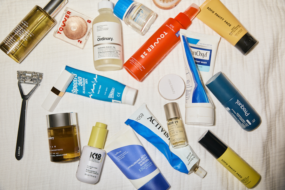 When I was wearing masks all the time, I found Tower 28’s SOS spray to be so helpful in avoiding acne. Now I use it every morning before I write. I work out and cleanse after with Sofie Pavitt’s cleanser. It’s especially great when I don’t have the time to double cleanse, like when I’m traveling. I used to use olive oil to take off my makeup, but I started using Fig 1’s micellar oil cleanser about four years ago and I think it’s great. It’s super affordable, too. And Isntree’s Hyaluronic Acid Watery Sun Gel is my favorite sunscreen. I like that I can use a ton of it and still blend it in.