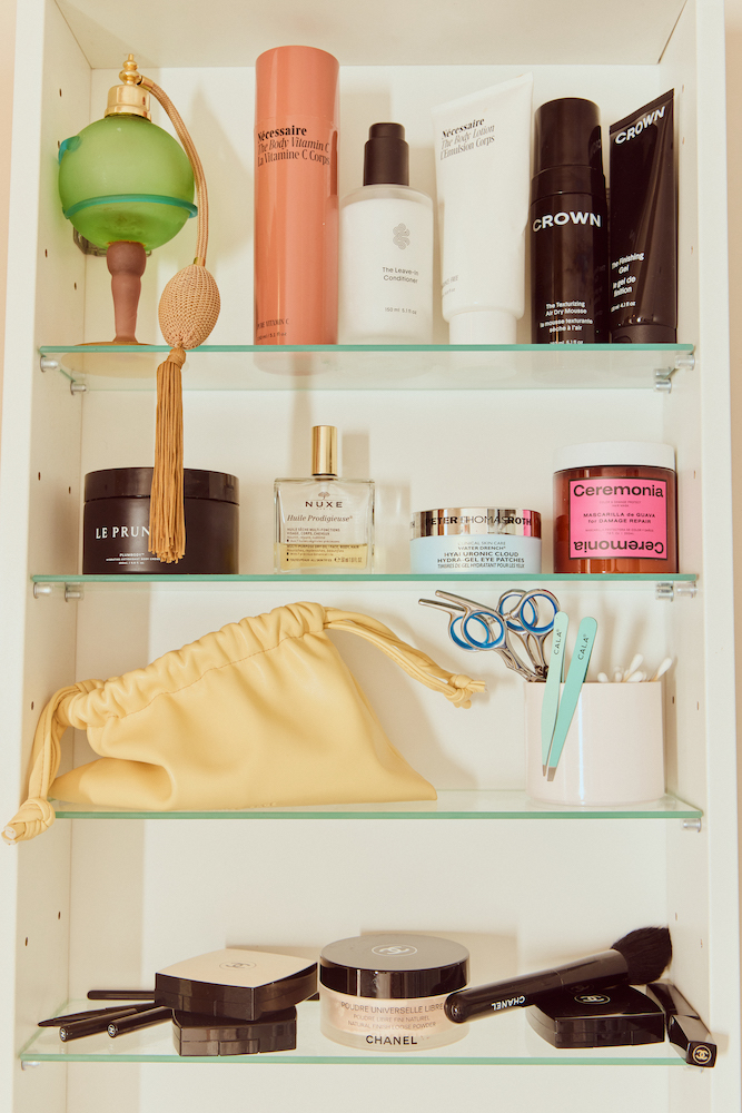 I used to have a lot of seborrheic dermatitis, and the rosemary shampoo and conditioner from Nêcessaire have been great at cleansing my scalp but also keeping it really balanced. They also smell divine. Every once in a while, I put on Crown Affair’s leave-in-conditioner to hydrate my hair, which gets quite frizzy. It also doesn’t help that LA is extremely dry. And maybe once a month, if I have an event, I use Crown Affair’s cleansing scrub. I recently discovered Rōz—I’ve been trying the Foundation mask, milk hair serum, and Santa Lucia styling oil—and honestly, I don't think my hair has ever looked or smelled better.