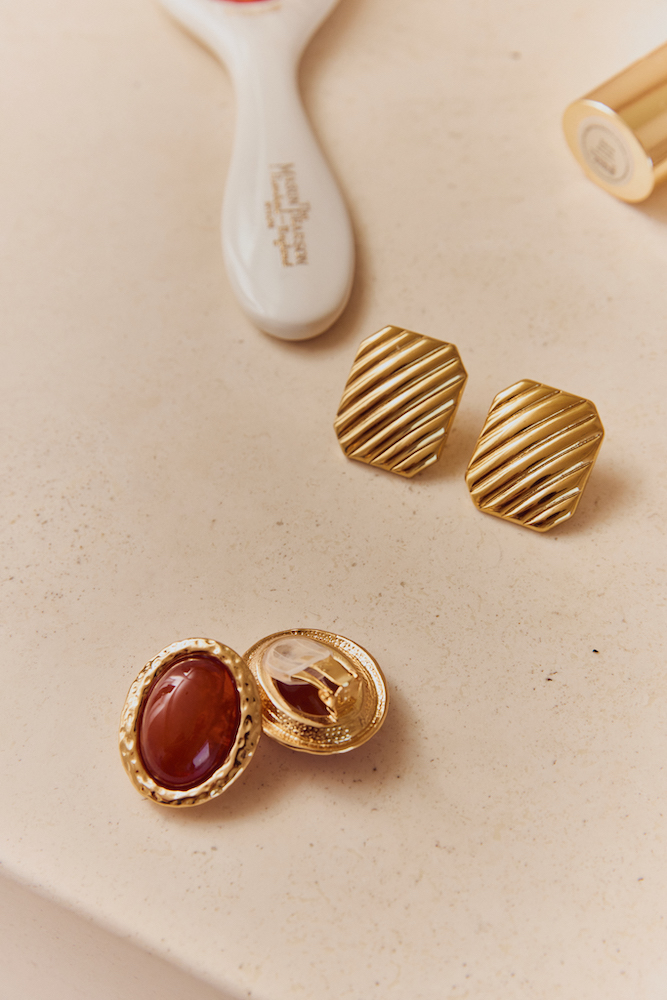 Even with blushed lips, I don’t feel like myself without lip liner. I have a lot of them, and they’re all over the place—around the house, in my purses, you name it. They’re almost all in the same color family though. [Laughs] Make Up For Ever’s Anywhere Caffeine is among the darker ones in my collection. Charlotte Tilbury’s Pillow Talk is a bit more pink. Refy’s Rosewood is great, too. I don’t use a ton of lipstick. I also don’t use a lot of gloss because I don’t want my lips to look shiny. I’m happy just lining my lips and throwing on Summer Fridays lip balm in Vanilla or Rhode’s lip treatment in Salted Caramel. If I do want a tiny bit of color, Merit’s tinted lip oil in Marrakech, a soft peach, is the best.