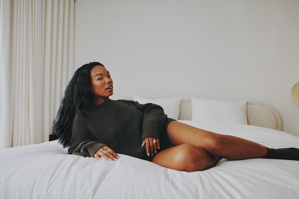 As for my hair, I have a five-month-old baby, which means it’s changed a lot throughout my pregnancy and after giving birth. My curls are looser at the top of my head and more coily underneath. I’d say I have 4A, maybe 4B, curls. And I have a ton of baby hairs coming in after dealing with postpartum hair loss. But I still try to keep my hair routine very, very simple. Even before having a baby, I was just a lazy girl. [Laughs] I wash and condition my hair once a week—I’ve been developing my own for almost two and a half years. Then I use my Lobie Peptide Leave In Mask. I like to use it for a chic, slicked back look. Oh, and my favorite hair brush is from S-heart-S. It's the best at detangling.